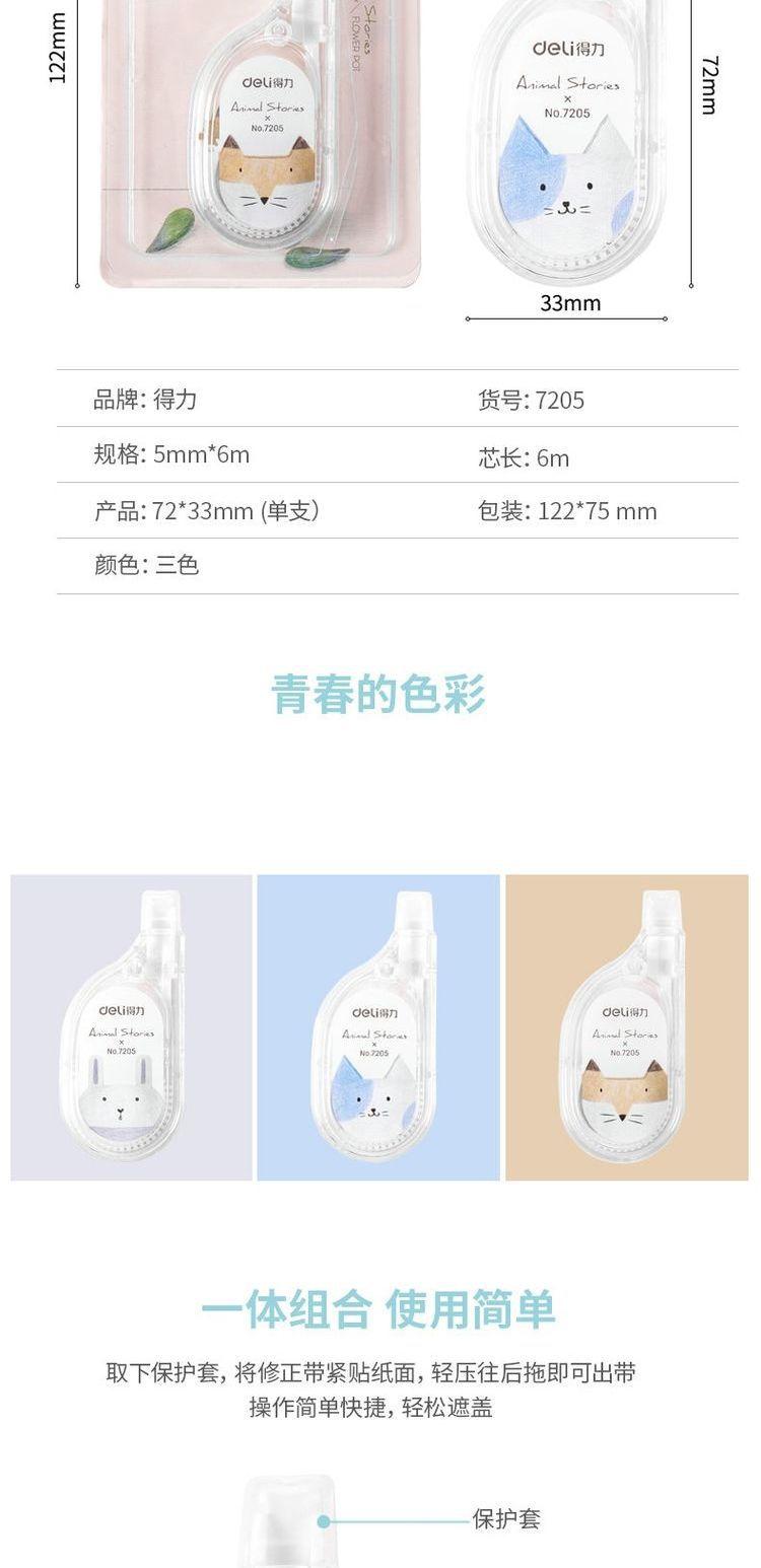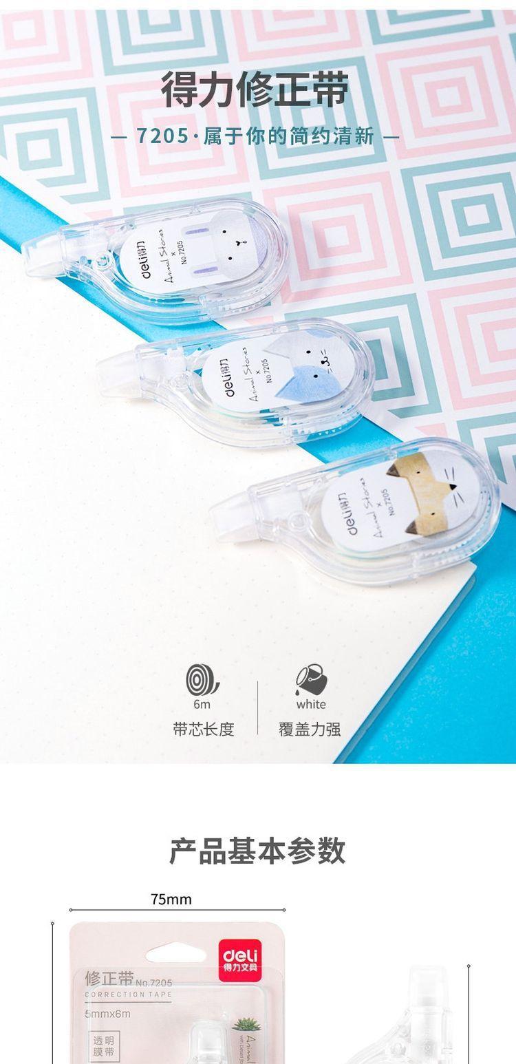 Cinta correctora Deli para estudiantes de primaria 7205 Cinta correctora portátil 6m Cinta correctora para estudiantes Cinta correctora Cinta correctora