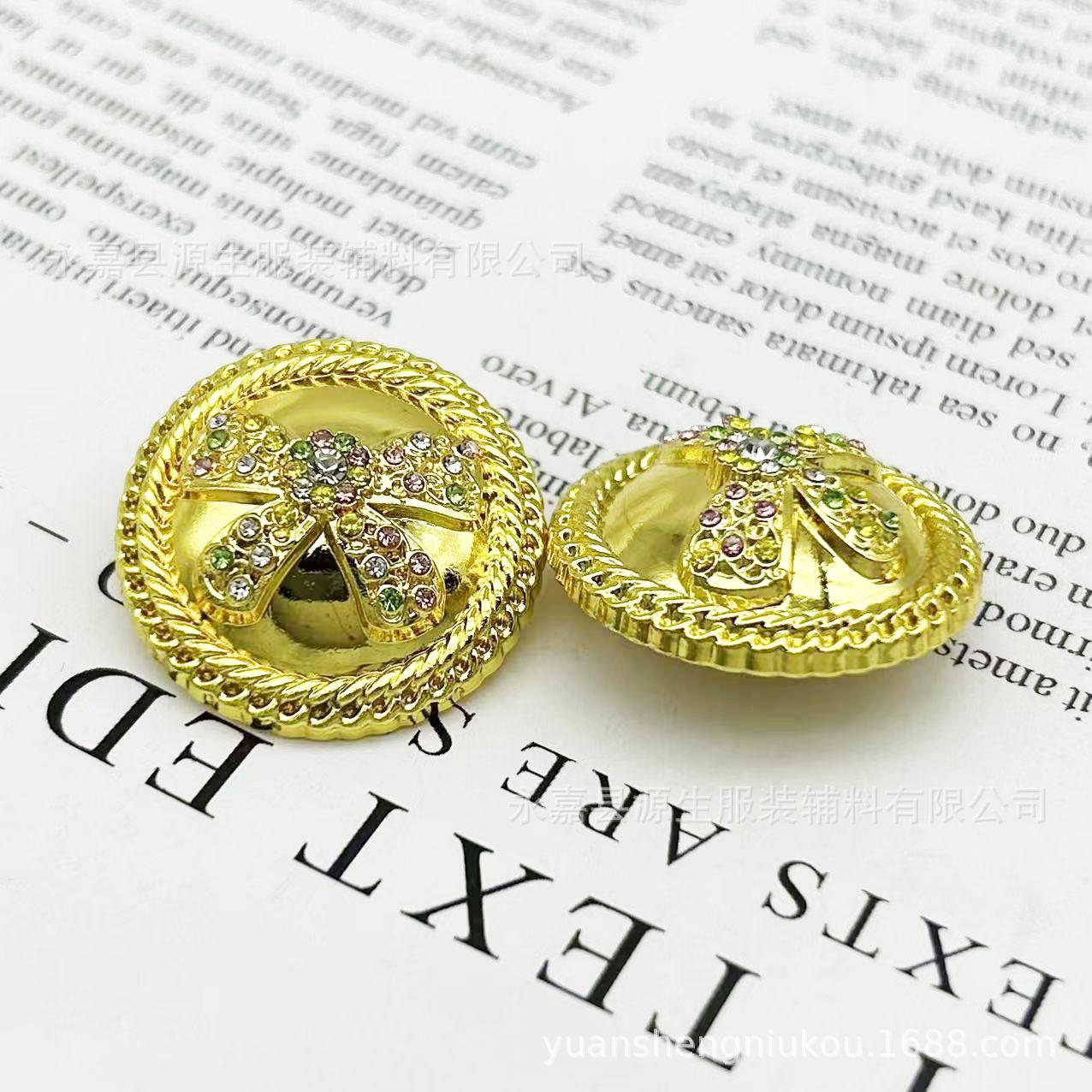 Nuevo suéter de abrigo con botones de diamantes de colores y lazo de encaje redondo estilo Chanel, suéter de tweed con botones