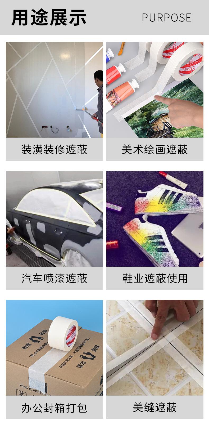 Cinta de enmascarar 702, venta al por mayor, papel adhesivo, pintura en aerosol, decoración, se puede rasgar, adhesivo unilateral, papel de enmascarar grueso y muy pegajoso.