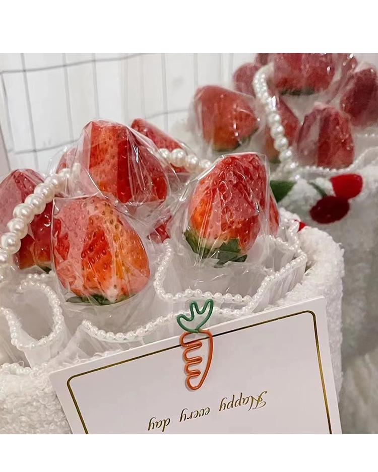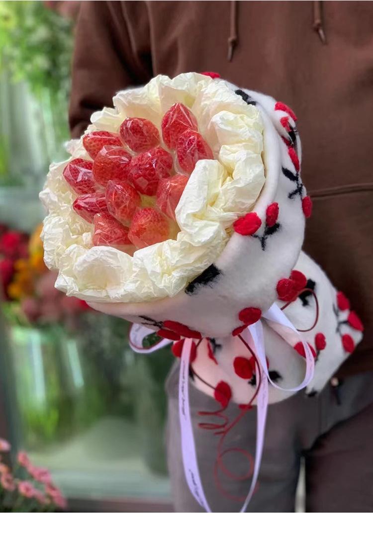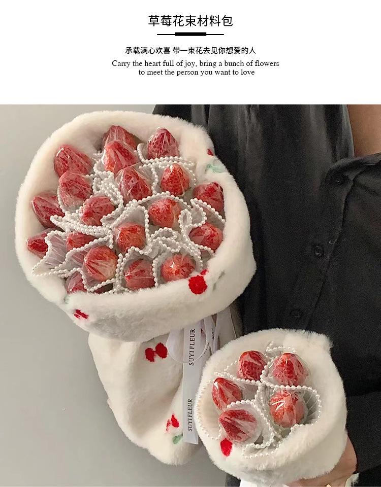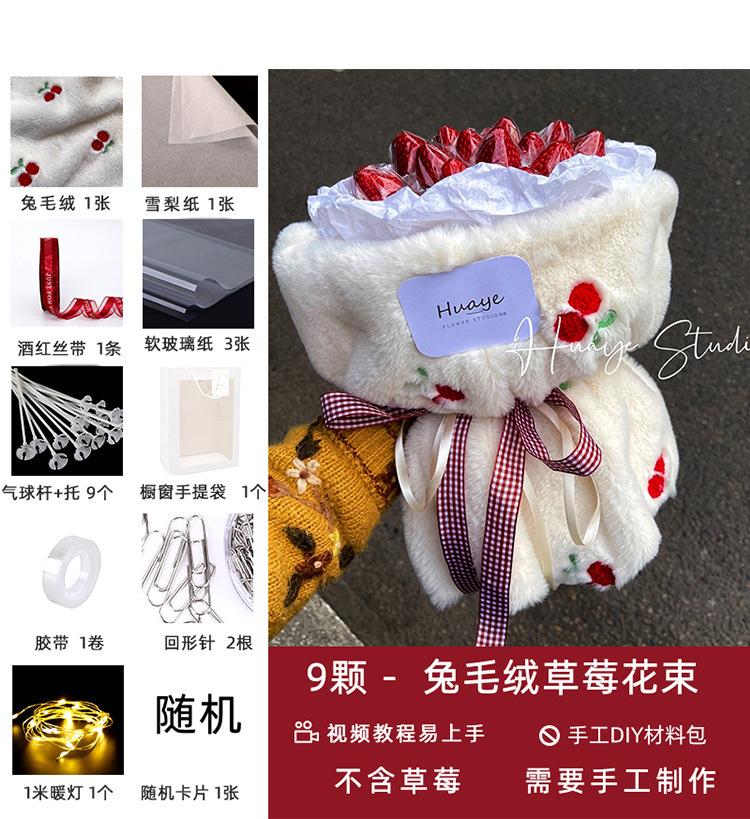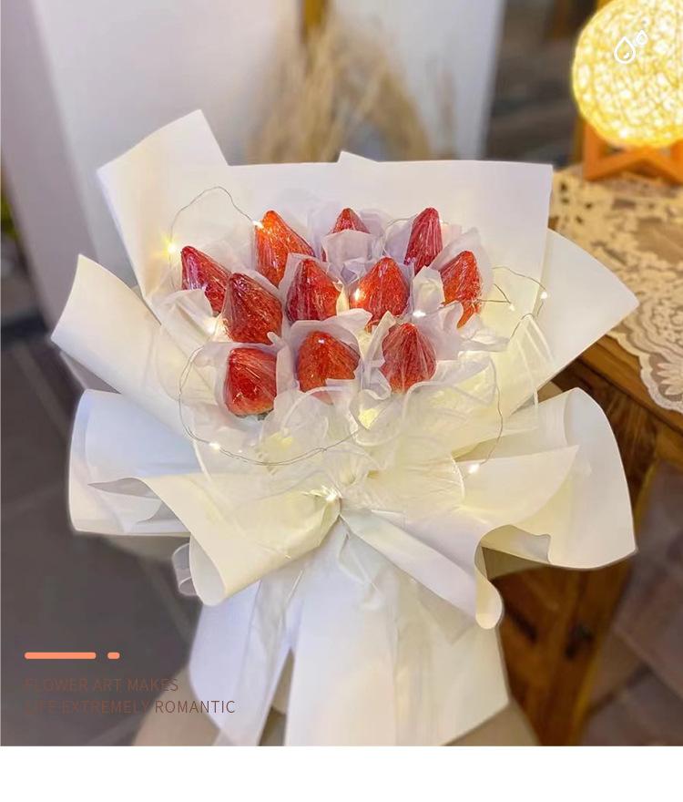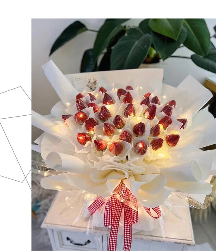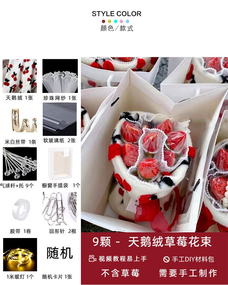La bolsa de material para ramo de fresas y cerezas luminosas hecha a mano de color rojo de red para bricolaje de Navidad es simple y fácil de usar.