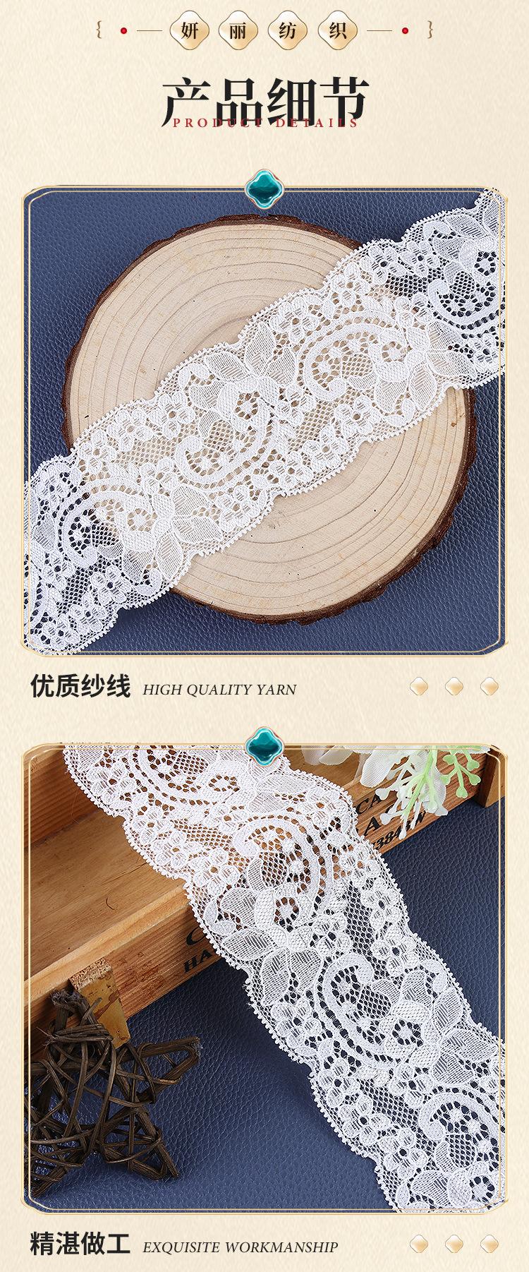 Tela de encaje hueco blanco, tela de encaje elástico, tela de encaje para vestido y ropa interior, tela de encaje de nailon