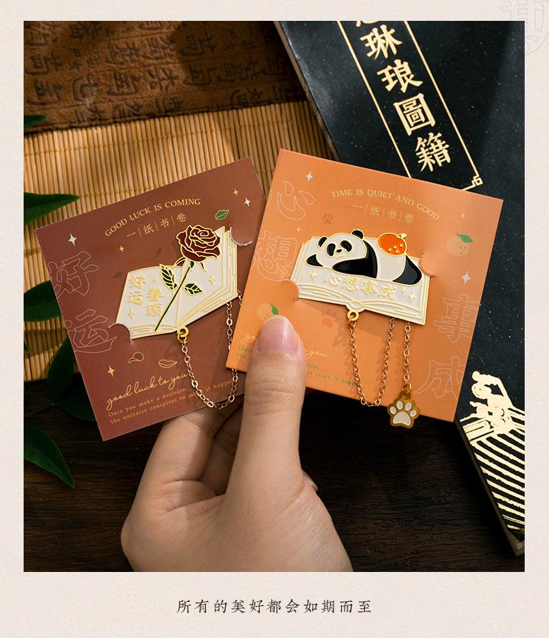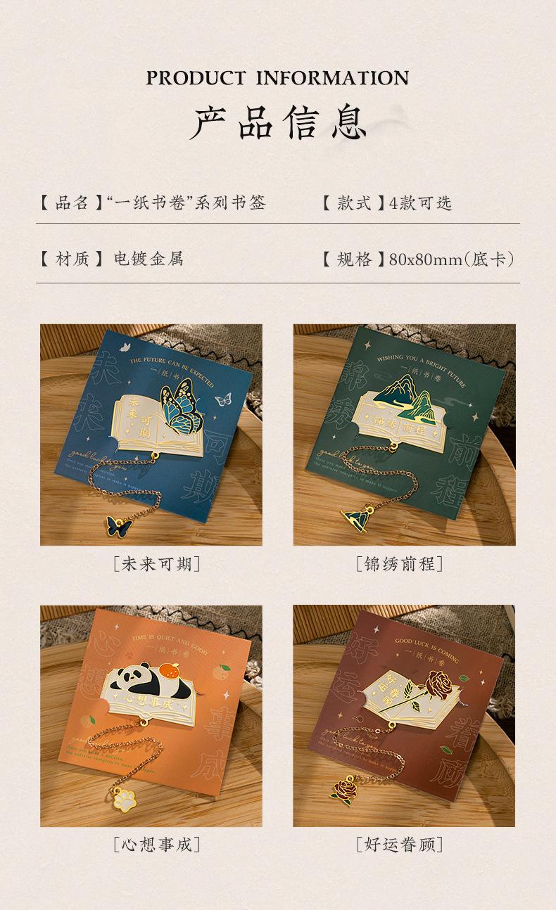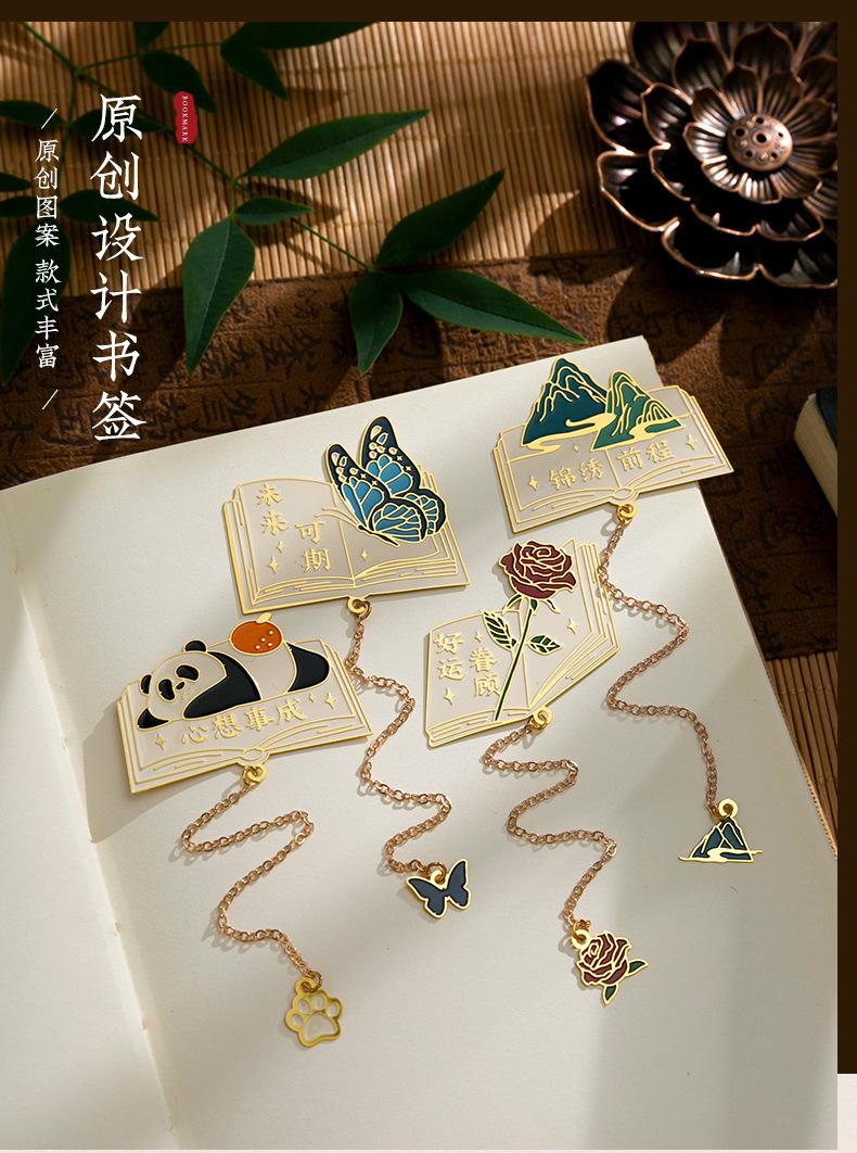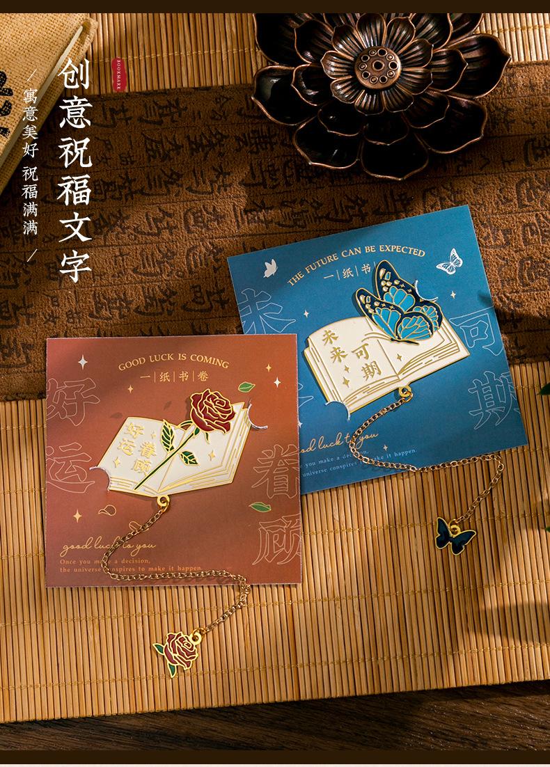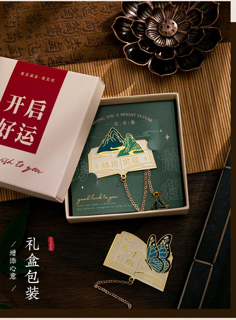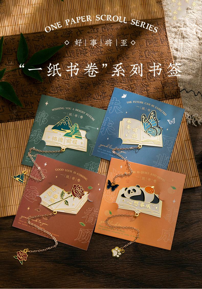 Un libro de papel Serie Roll exquisito marcapáginas de metal hueco caja de regalo estilo chino antiguo cultural creativo inspirador papelería regalo escolar