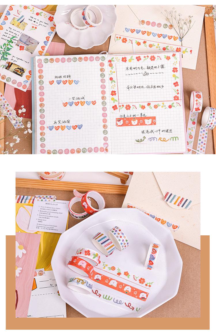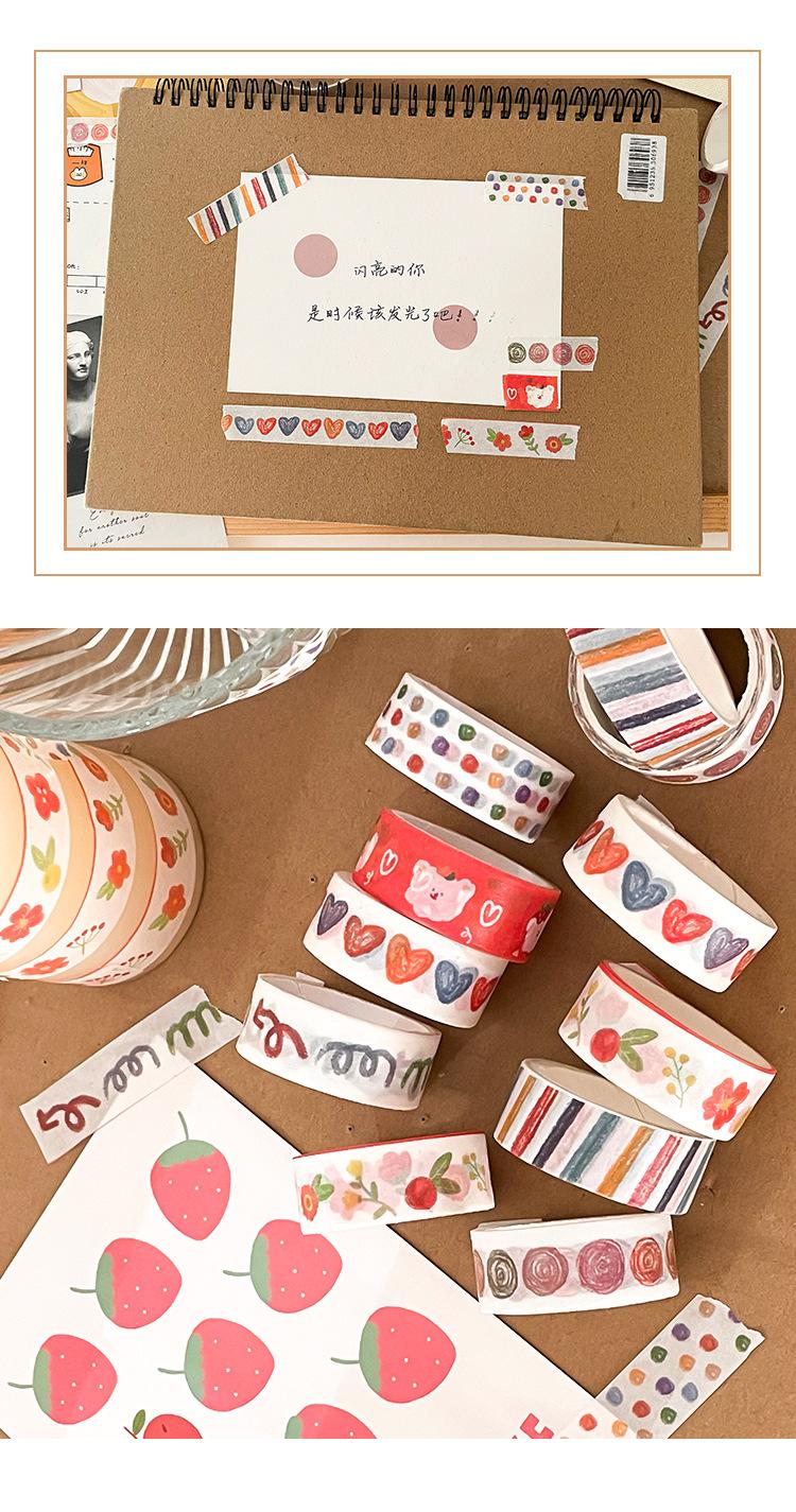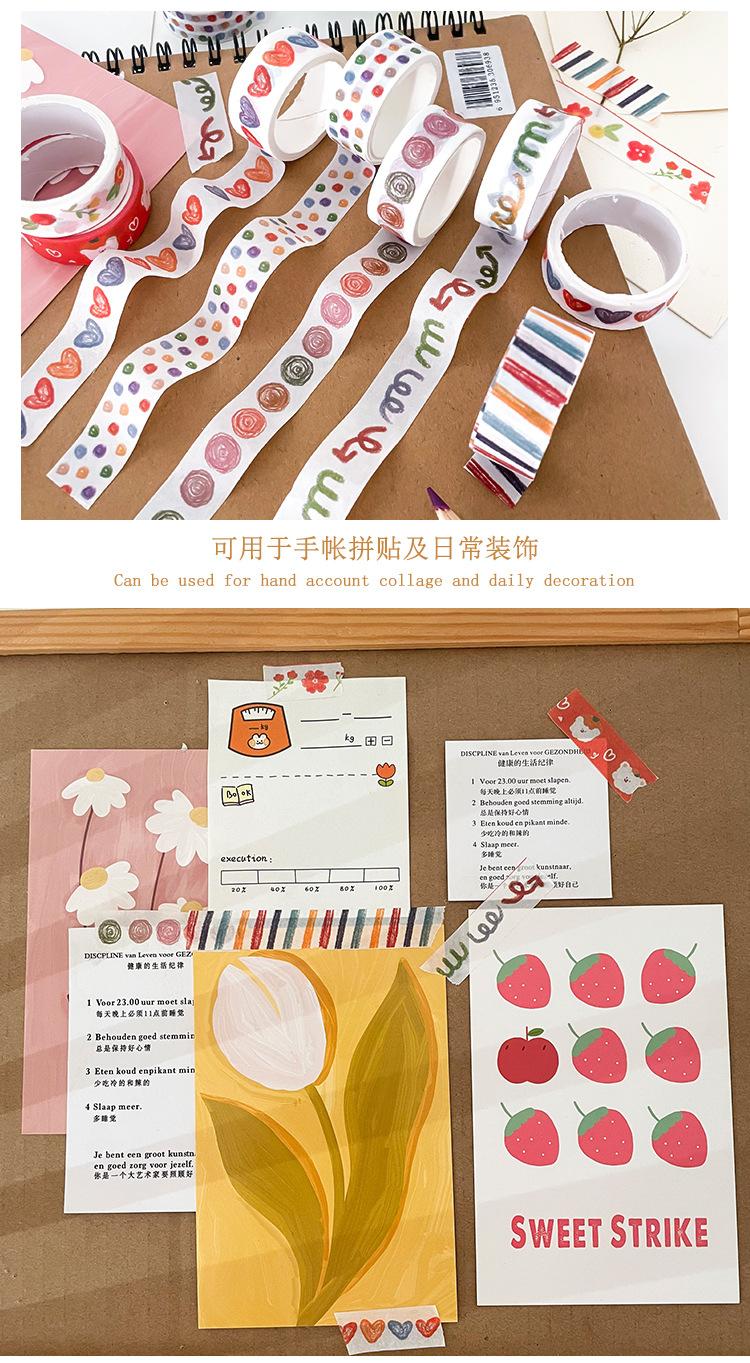 Cinta adhesiva con forma de corazón para manualidades, diseño de lunares, color rosa, para diario, decoración, pegatinas con patrón pequeño