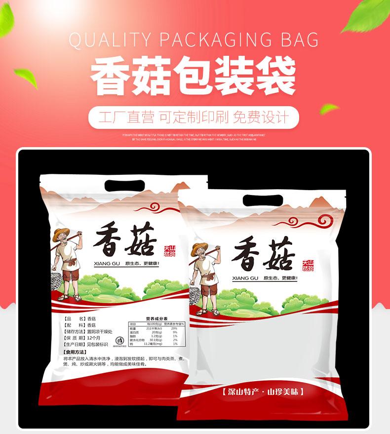 Bolsa ziplock para hongos, bolsa sellada portátil, bolsa de plástico para regalo, productos secos, bolsa de embalaje sellada de especialidad local, venta al por mayor de Gutian