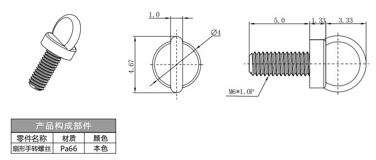 Tornillo de mano al por mayor de fábrica, tornillo de mano, tornillo de ventilador de plástico de perno de nailon M6X15S