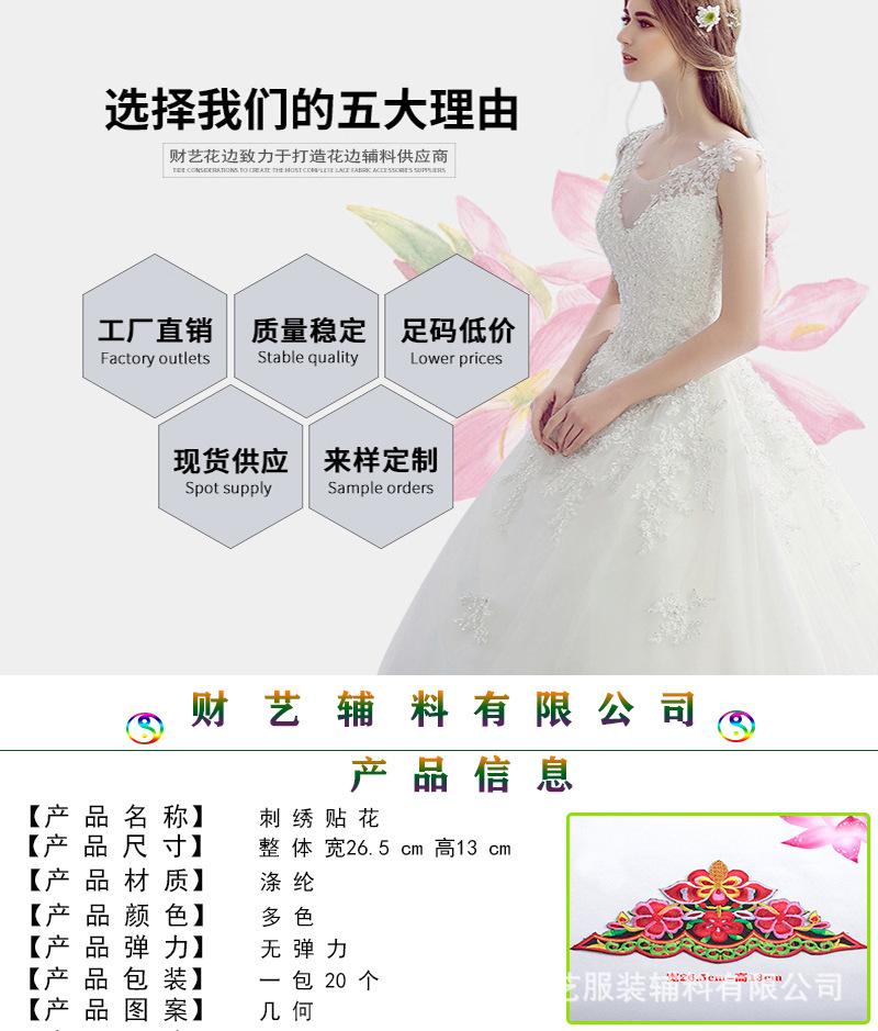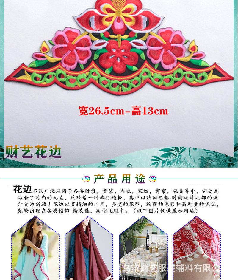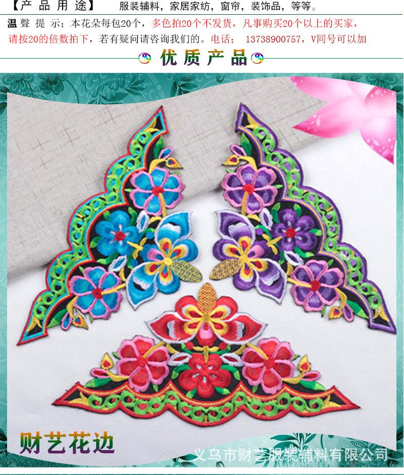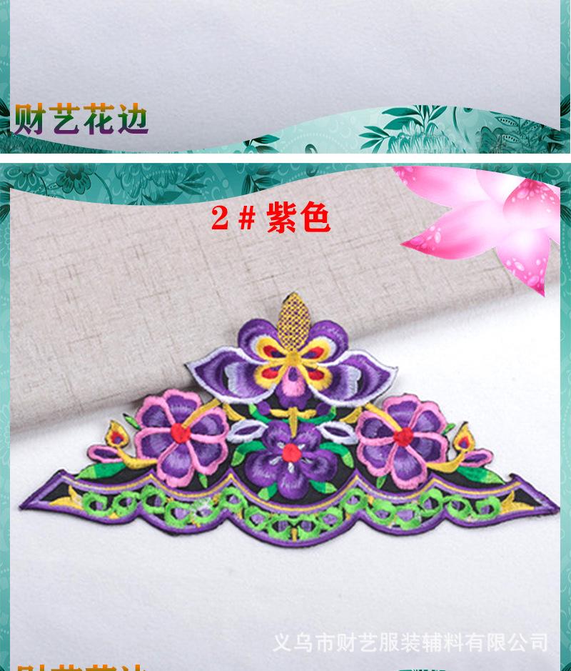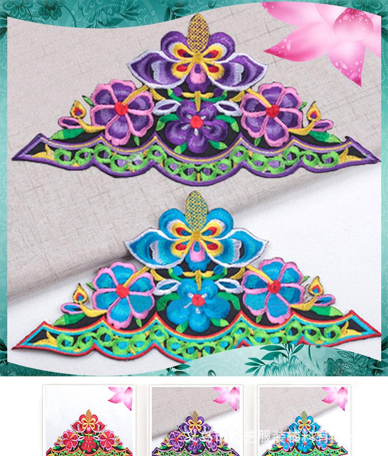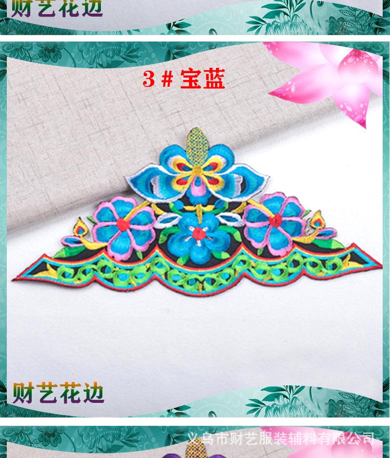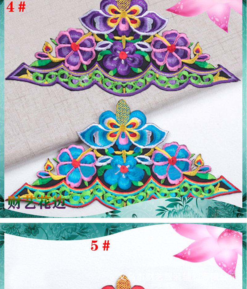 Fábrica de Yiwu, venta al por mayor, apliques bordados para traje de escenario, parche de tela bordado para traje nacional, traje antiguo para escenario, estampado en caliente