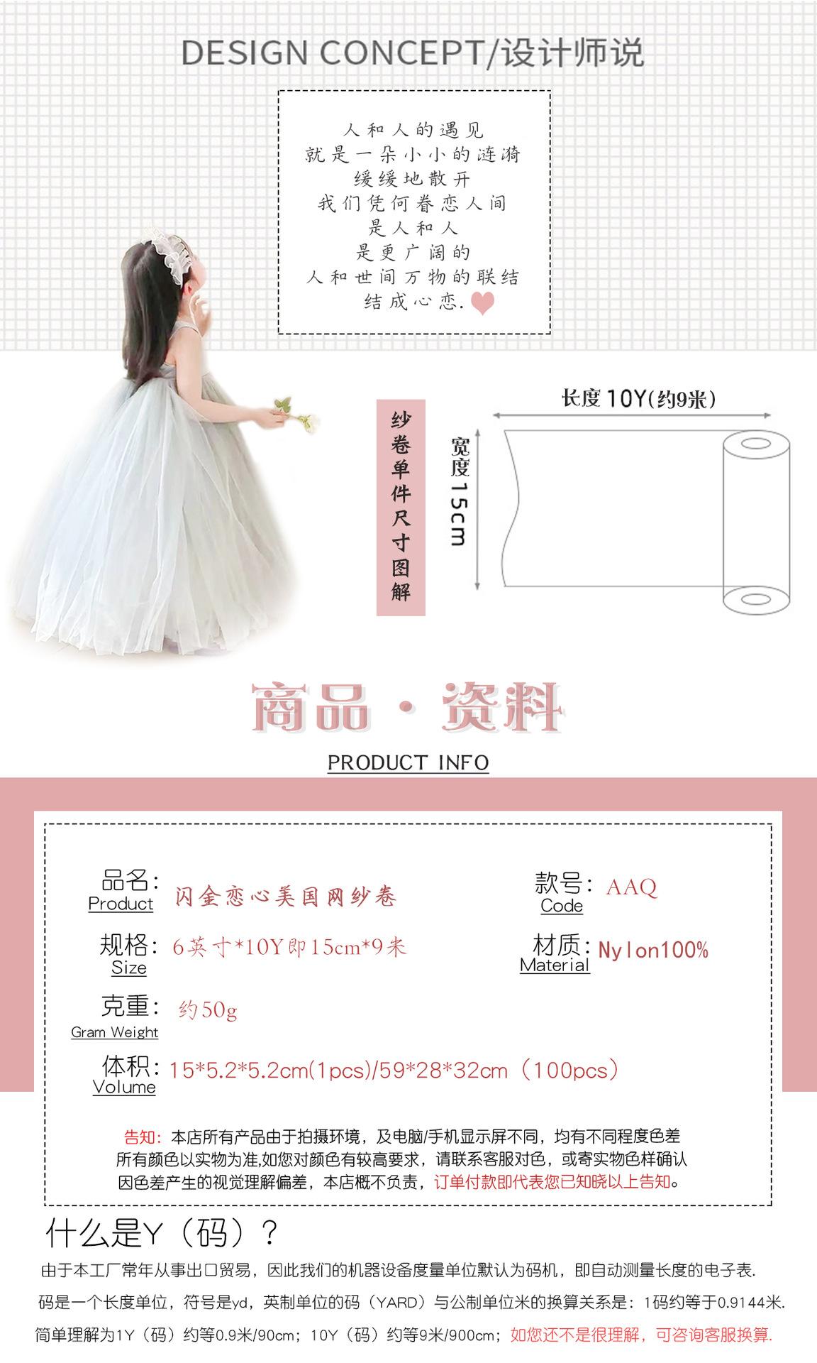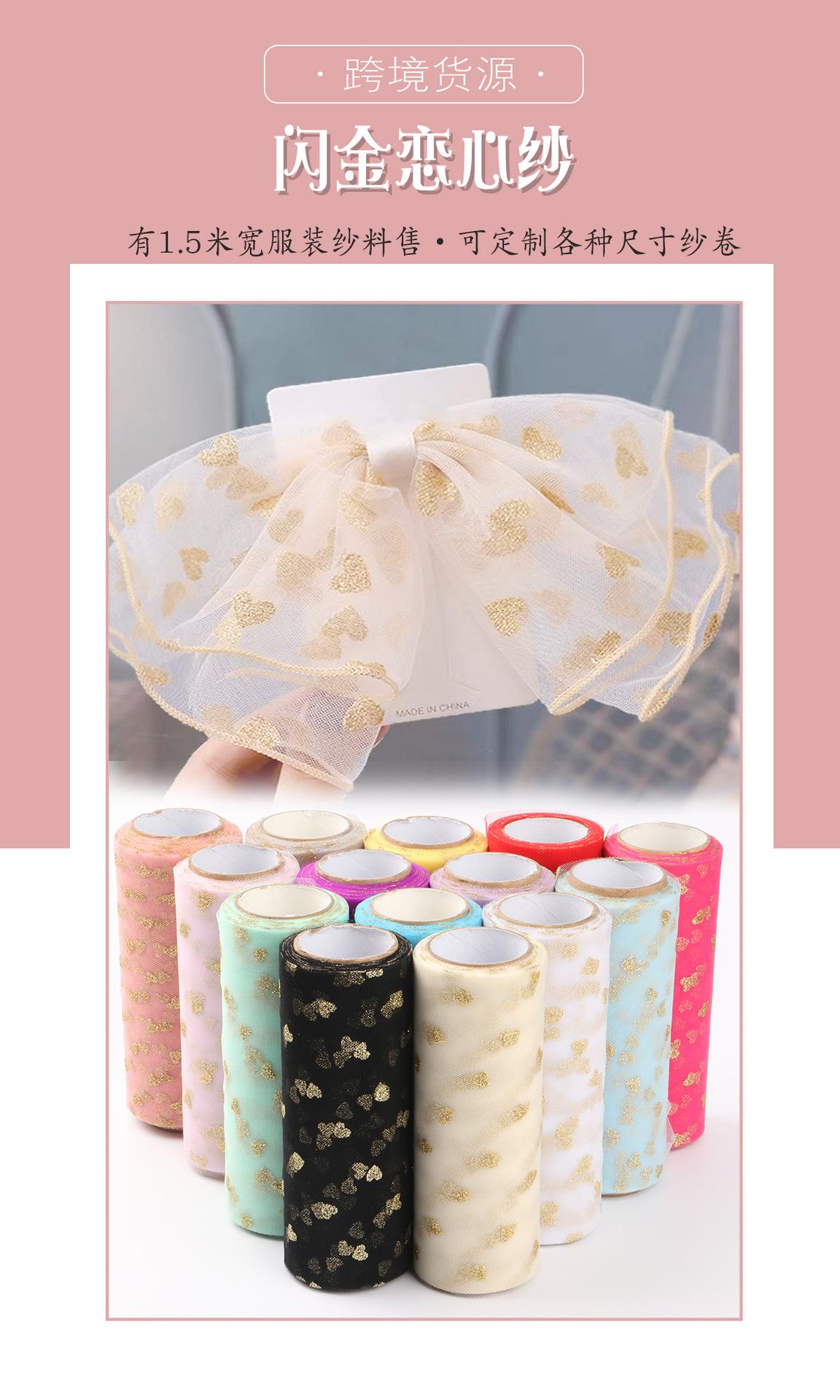 AAQ brillo dorado pequeño amor rollo de hilo suministros para fiesta de boda falda de mesa TUTU tela de malla rollo de malla americana