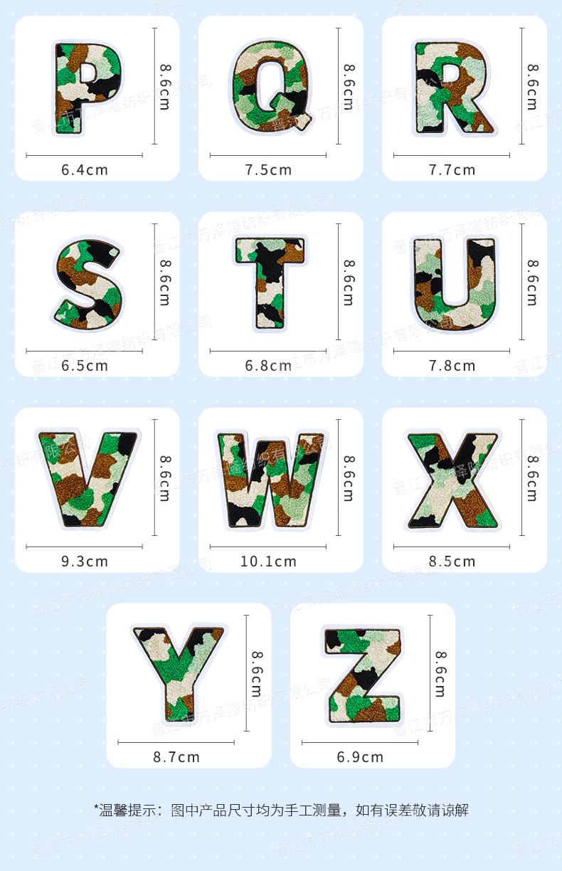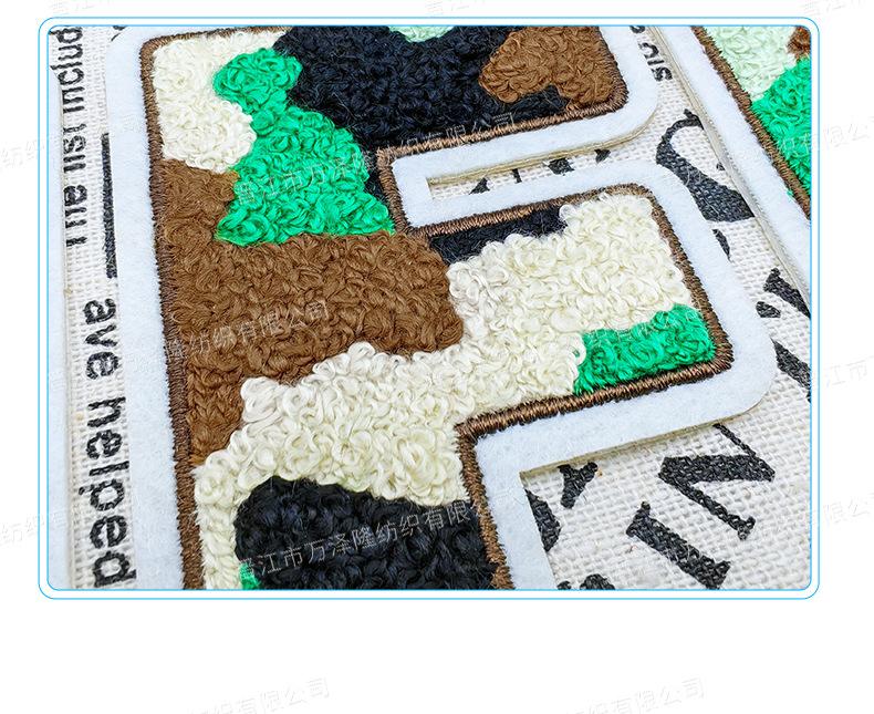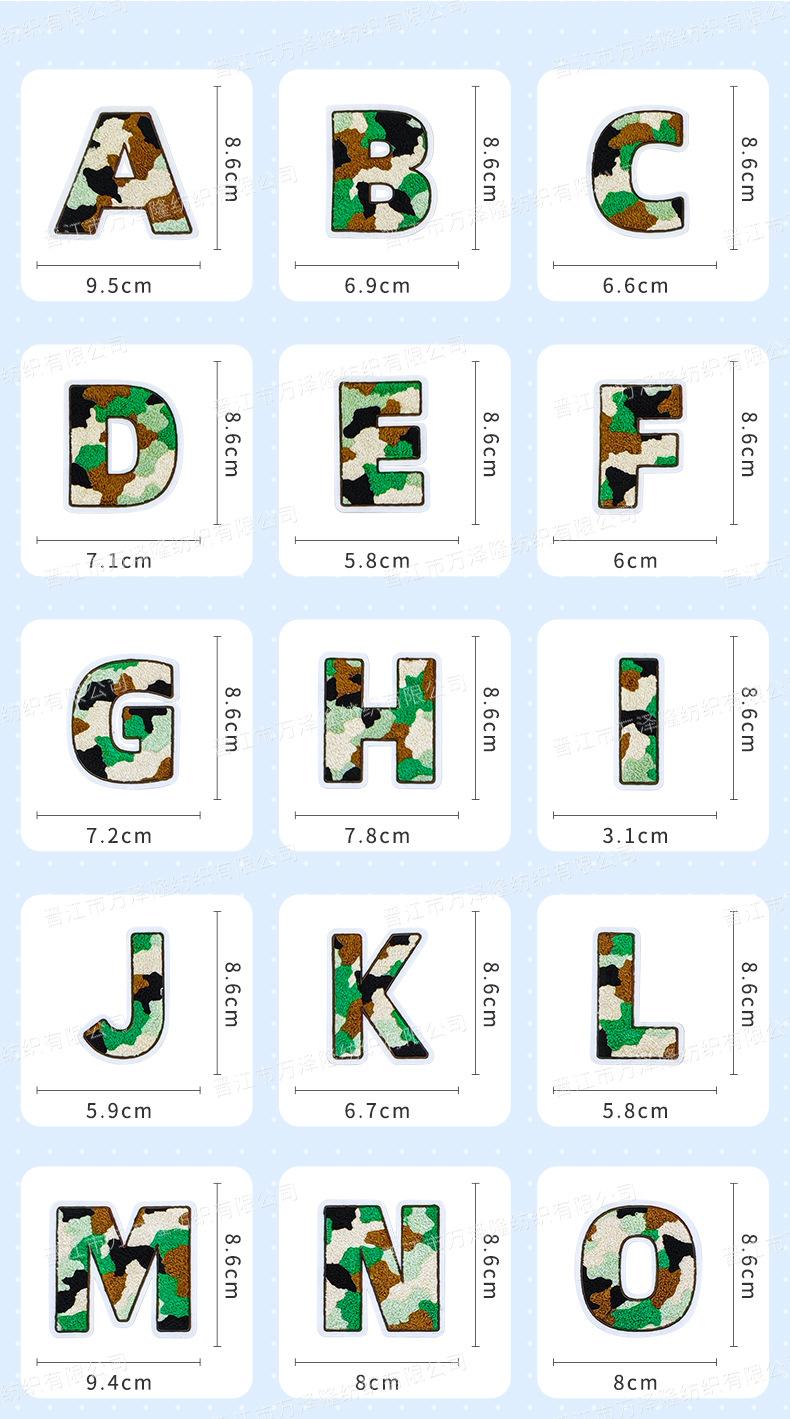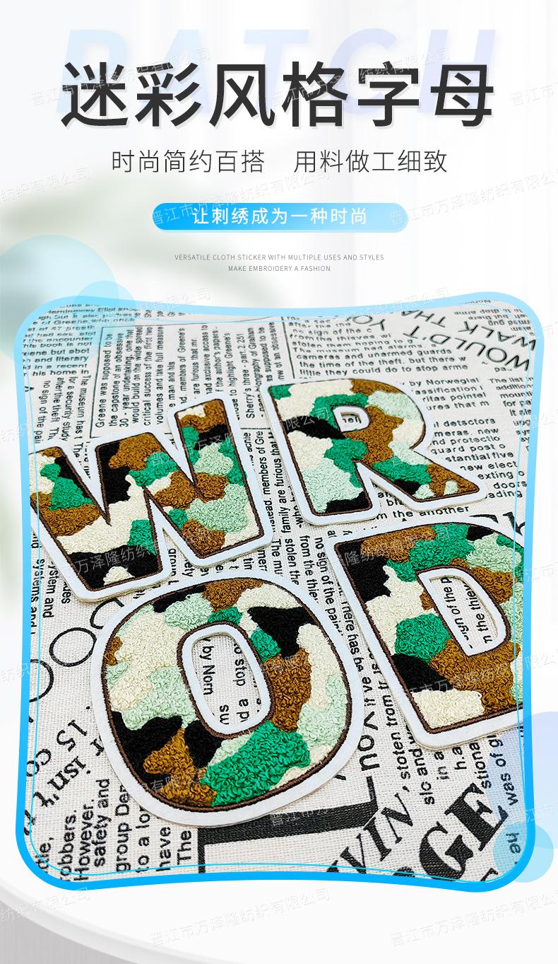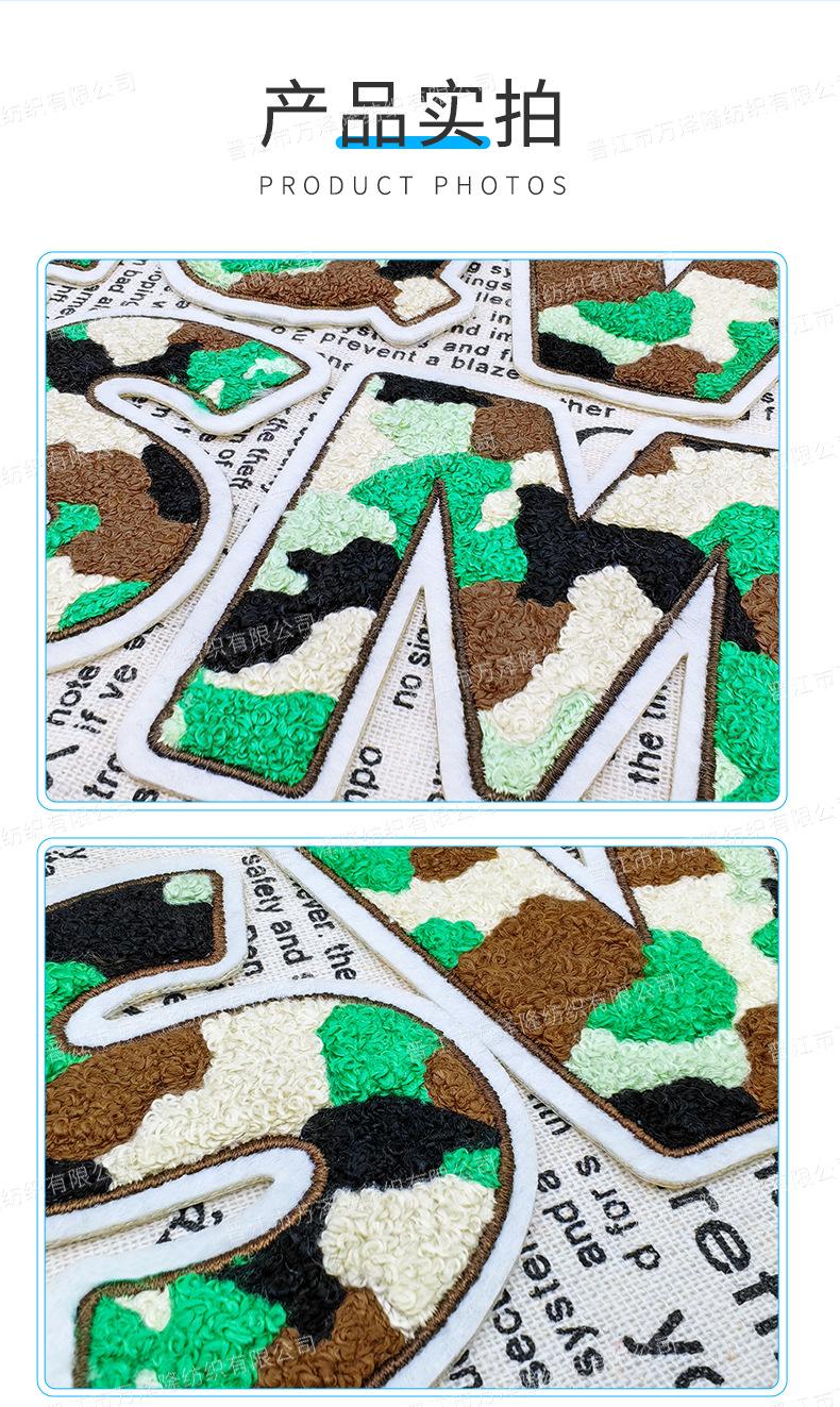 En stock camuflaje original letras inglesas toalla bordado bordado adhesivo trasero parches de tela accesorios de ropa bordado a máquina