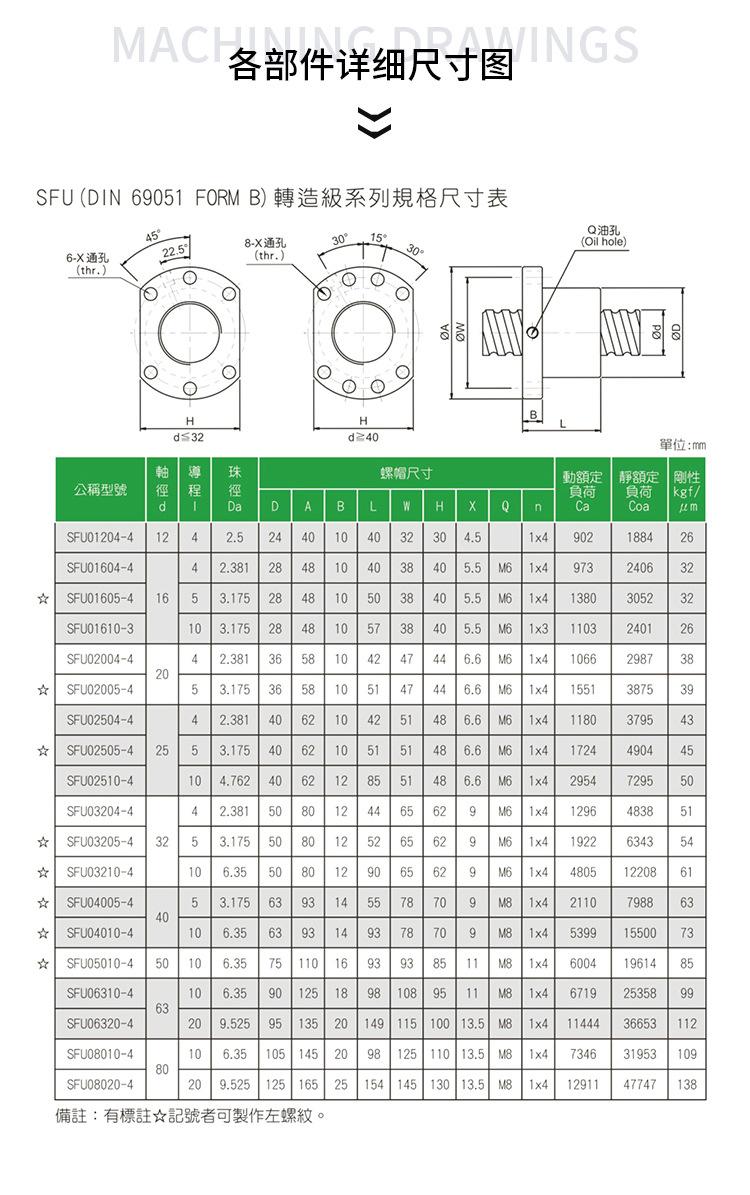 SFU01204, SFU01604, SFU01605, SFU01610, SFU02005, SFU02010, SFU02505, SFU02510, SFU03205, SFU03210, SFU04005, ...