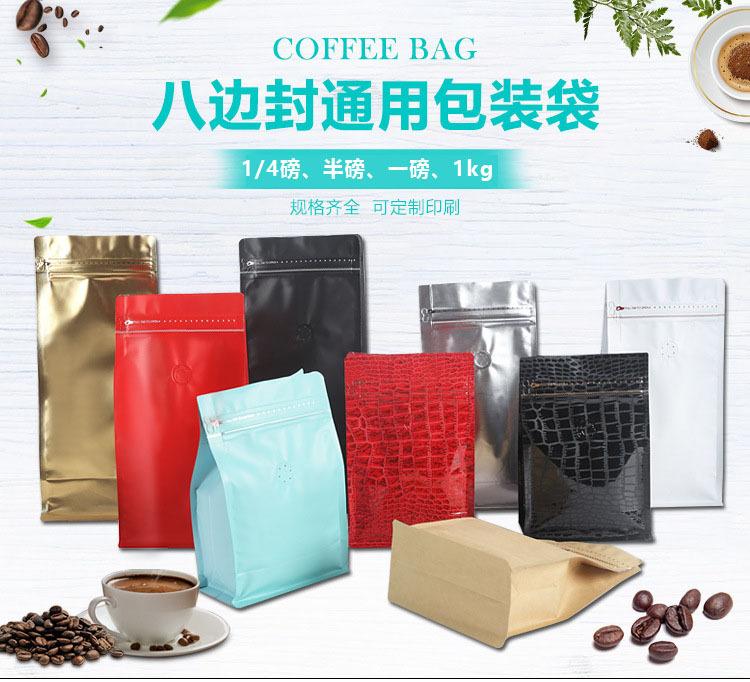 Bolsa de café Liyuan válvula de escape una libra dos libras bolsa de embalaje de granos de café ocho lados sellada papel de aluminio bolsa para alimentos té spot