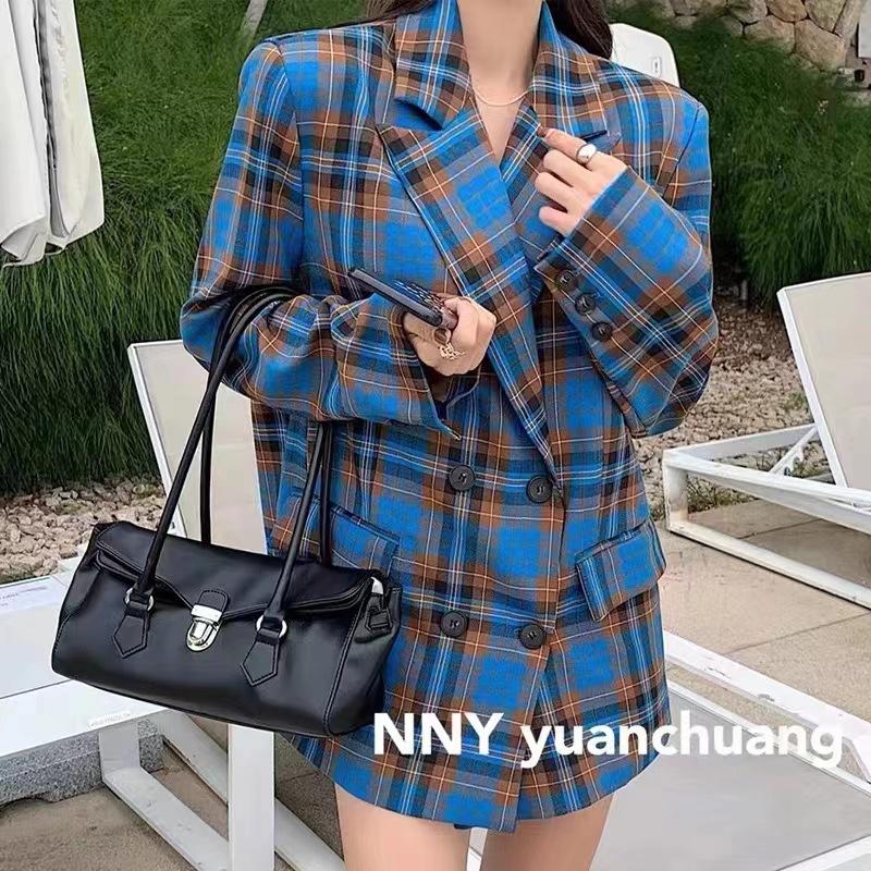 Traje casual de cuadros de sarga elástica teñida en hilo TR, vestido con tirantes, equipaje, zapatos, sombrero, almohada, tejido decorativo