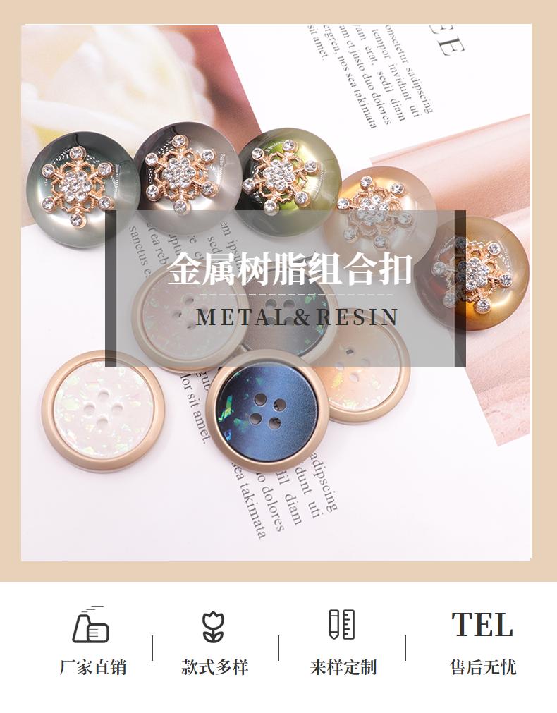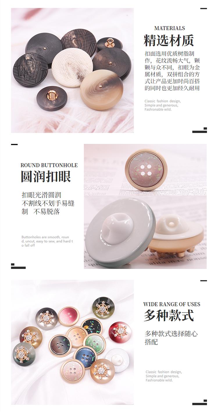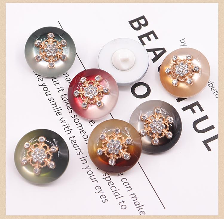 Botón de combinación de metal y resina con hebilla de imitación de cuerno y diamantes de imitación para abrigo, gabardina, suéter y traje de Chanel.
