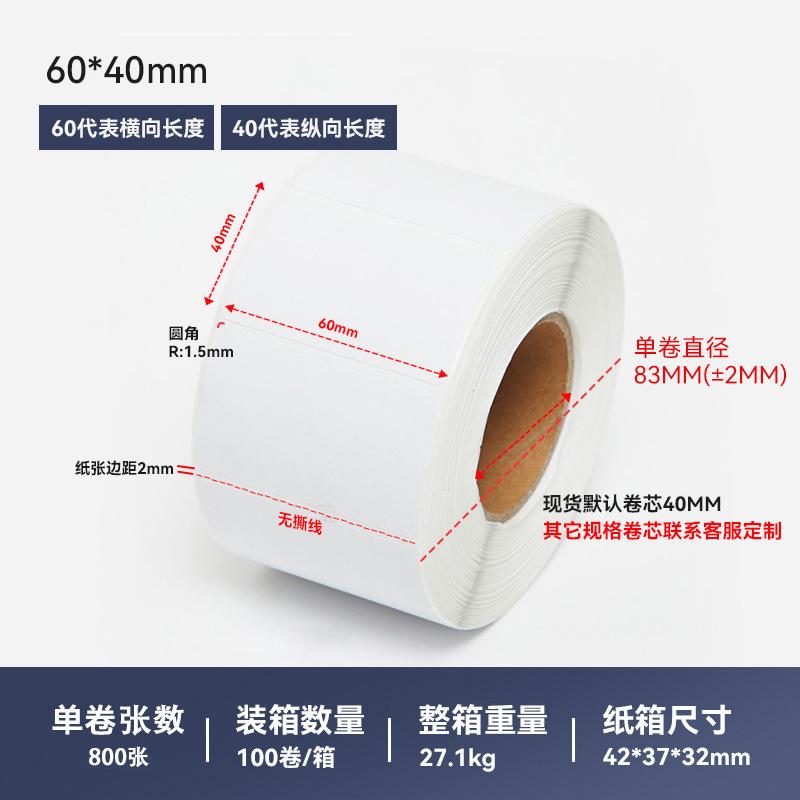 Papel térmico de triple prueba, papel de impresión de código de barras en blanco, rollo completo de 60 x 40 mm, etiqueta autoadhesiva, papel de etiqueta térmica
