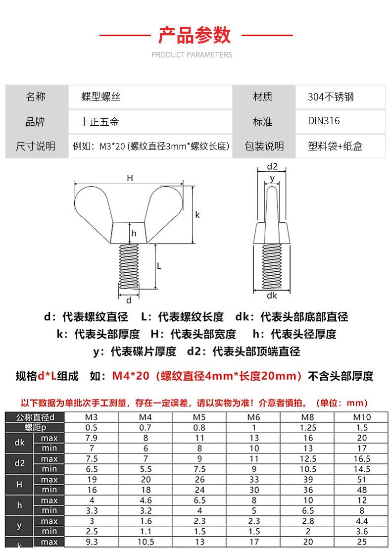 Tornillo de mariposa de acero inoxidable 304. Tornillo de mariposa de garra. Lingote. Perno M3M4M5M6M8M10M1.