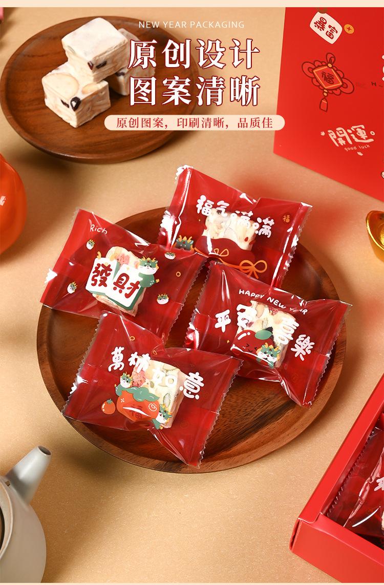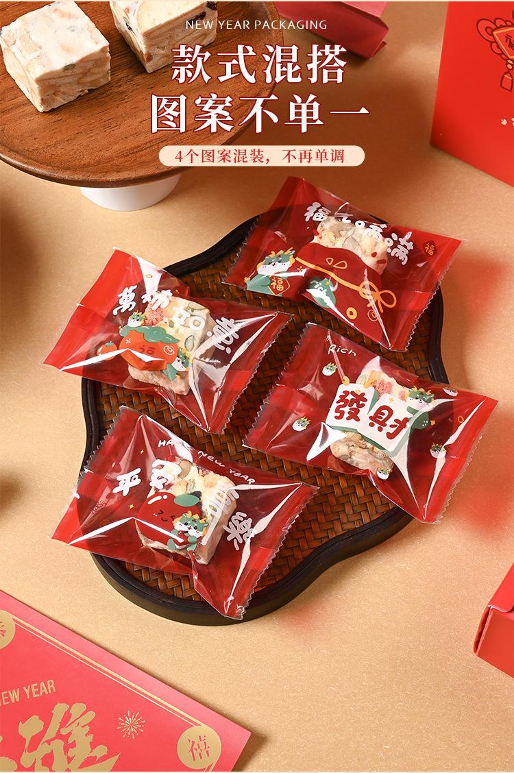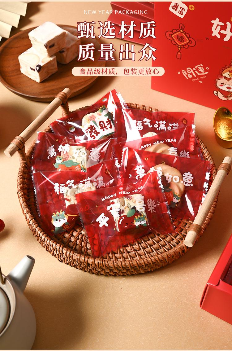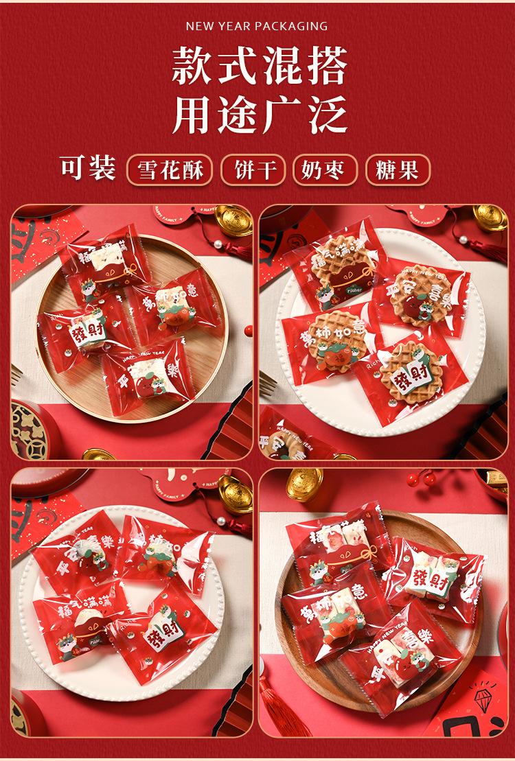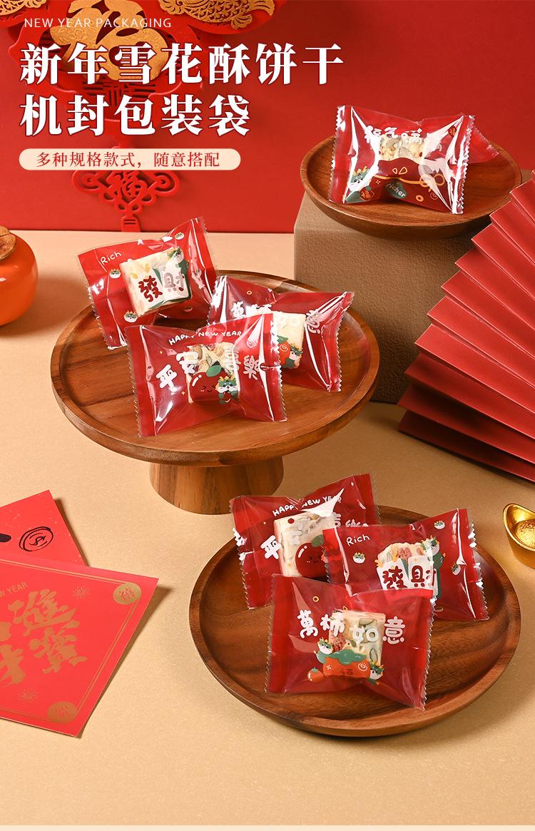 Bolsa de embalaje crujiente con copos de nieve de Año Nuevo, bolsa de sellado para máquina de galletas para hornear festivas rojas del Año del Dragón, bolsa de embalaje de dulces al por mayor