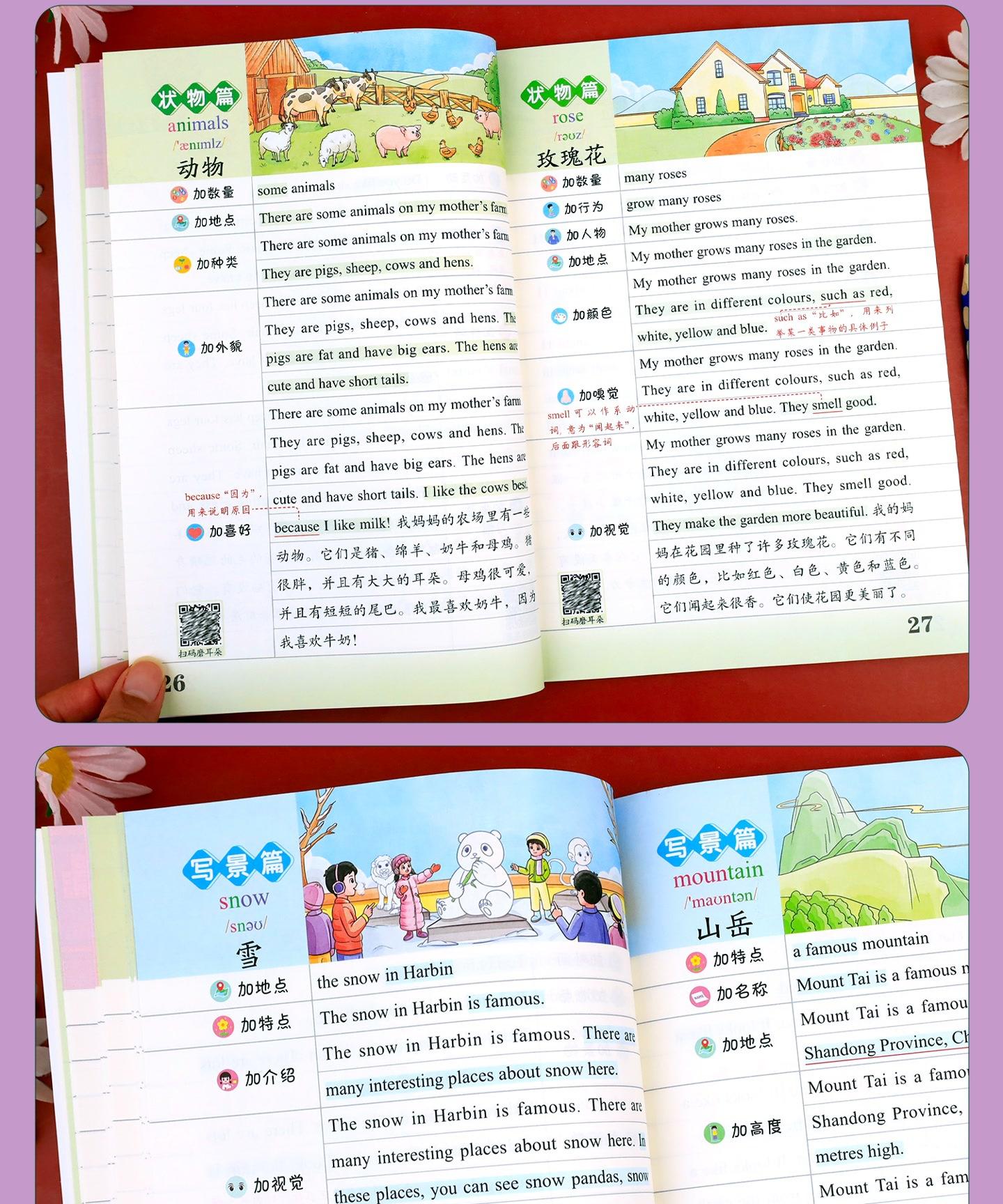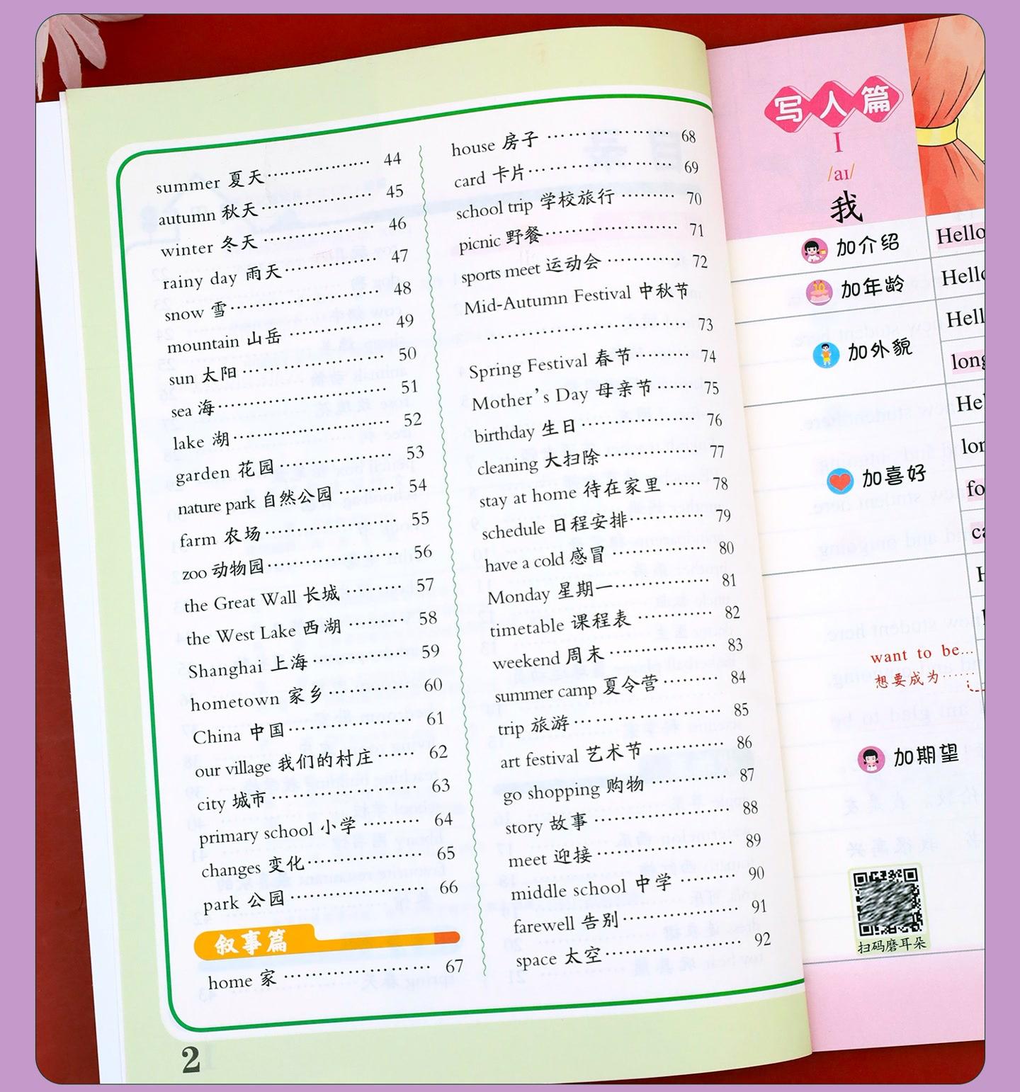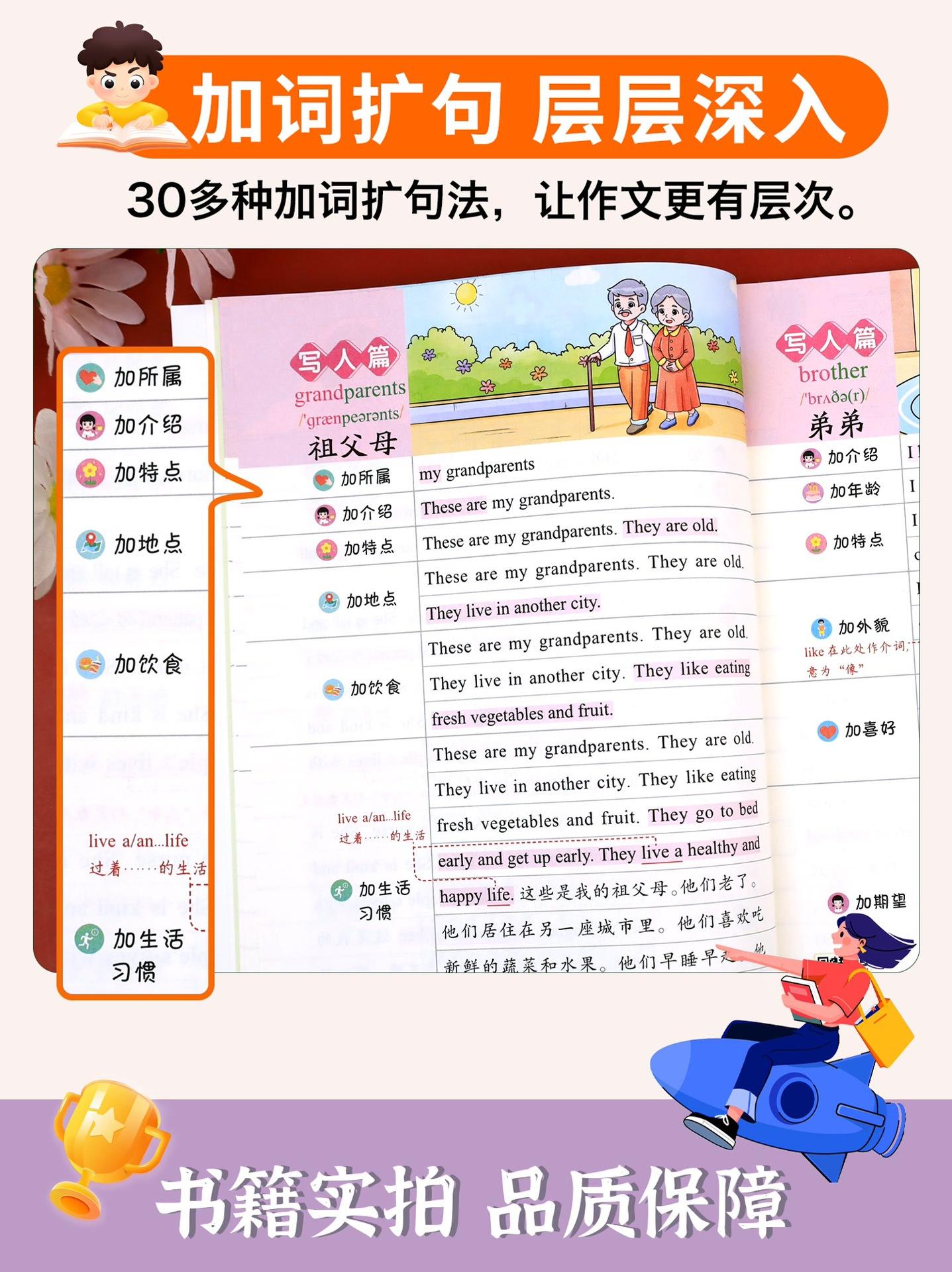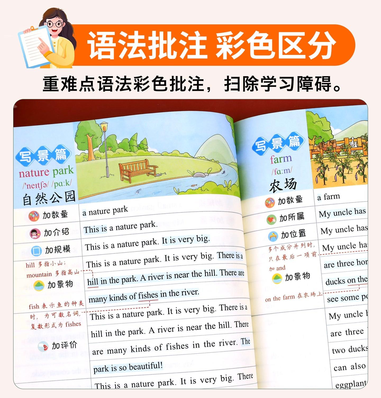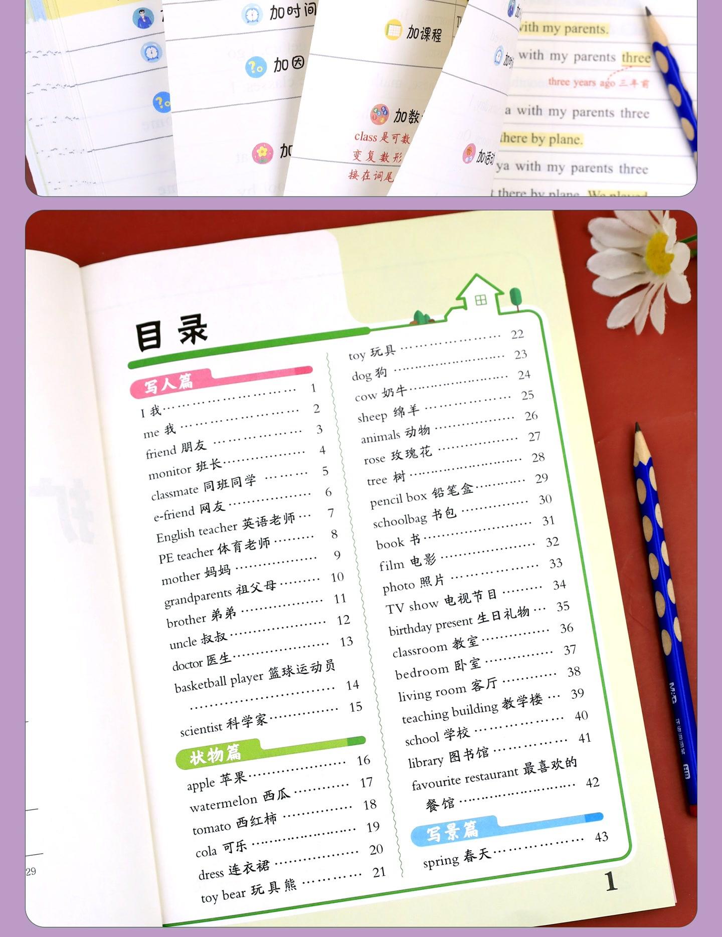 A primera vista, podrás ampliar la sintaxis del inglés y escribir composiciones.. Frases de vocabulario de gramática general de primaria de grado 123456