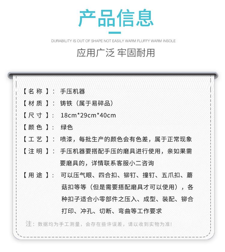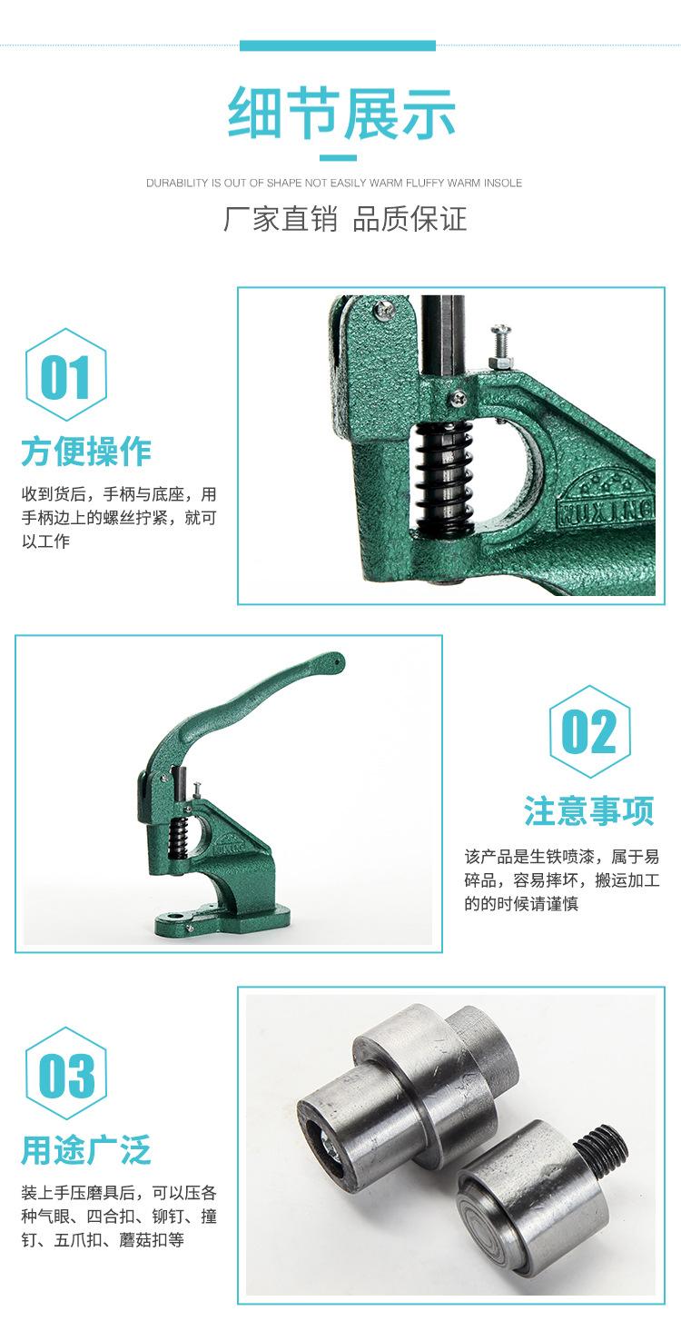 Fabricante Mayorista de Máquina de Prensa Manual de Metal Remache Ojal Botón Ropa Bolsa Verde Molde para Botón a Presión