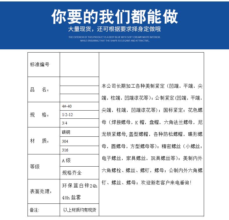 HacerUn fabricante y vendedor de variedades y especificaciones estándar estadounidenses, británicas y alemanas en todo el país.