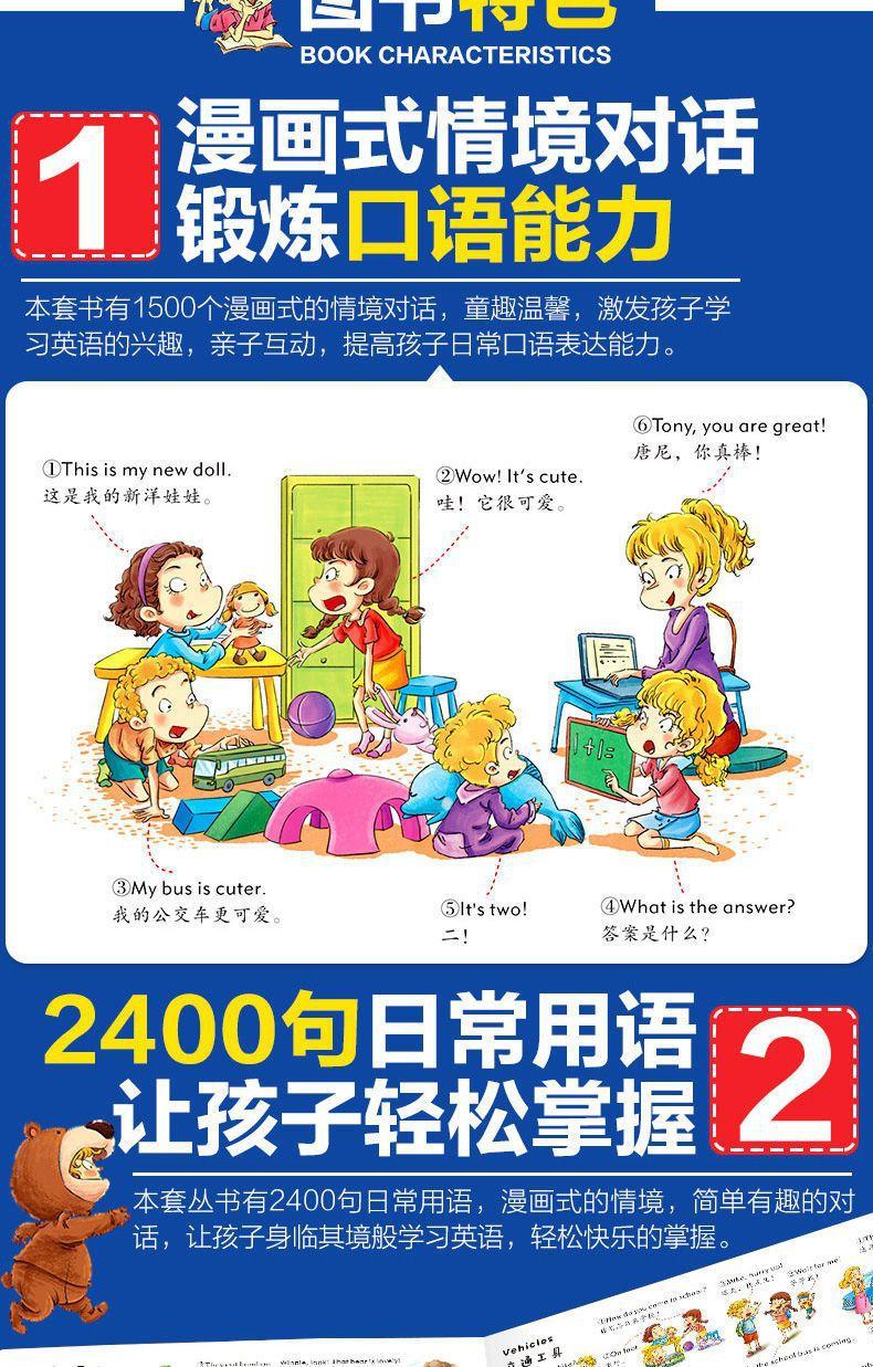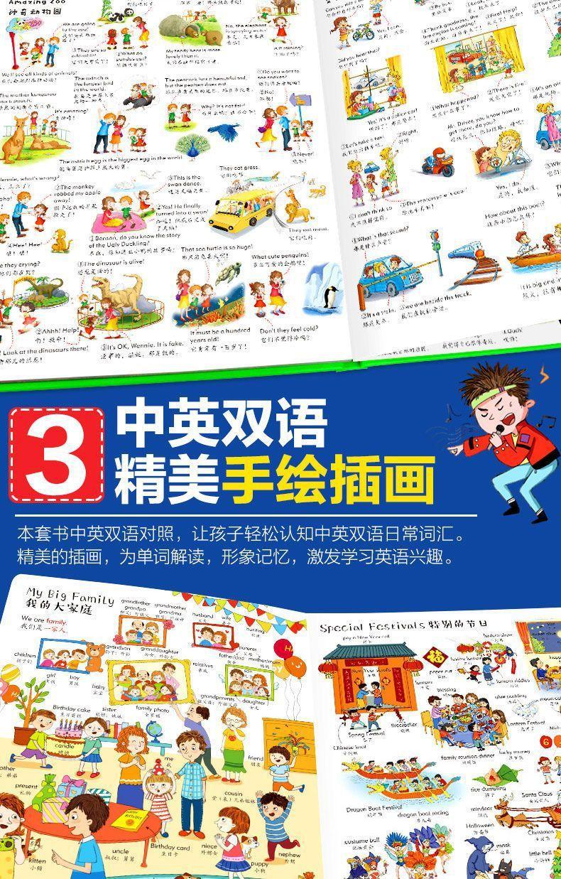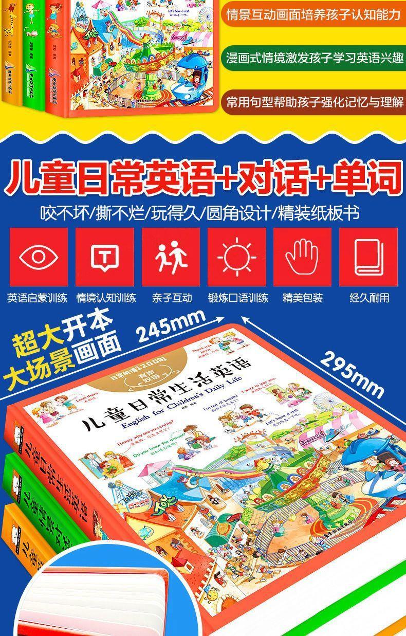 Libro infantil de inglés tapa dura con cubierta dura escena diálogo/Vida Diaria/palabras lenguaje diario 4 volúmenes lectura de audio