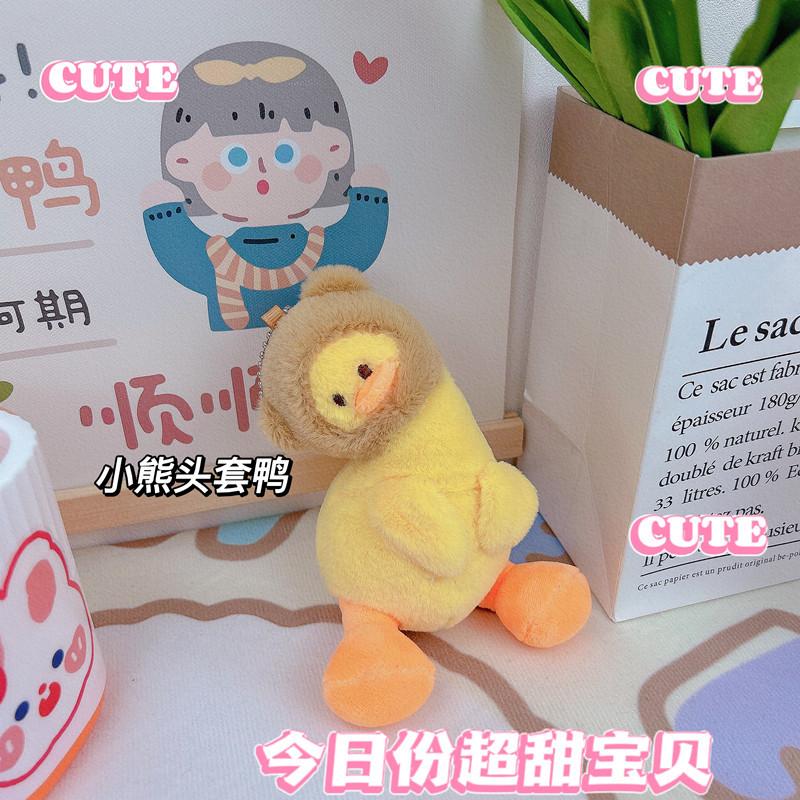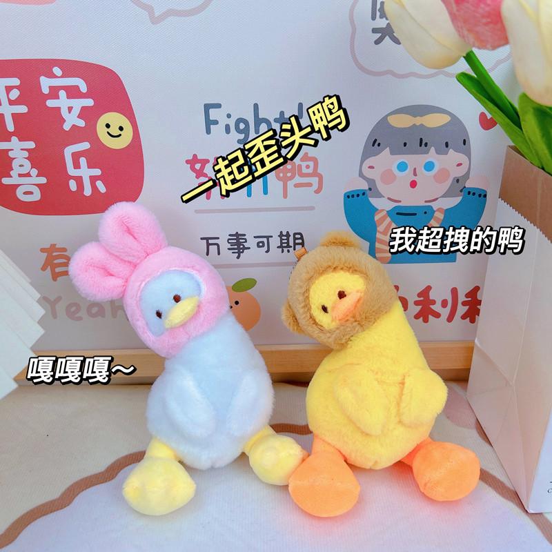 Llavero con colgante de pato de cabeza torcida, libro de equitación rojo, muñeco de peluche, mochila escolar, adorno colgante, muñeco agarrador