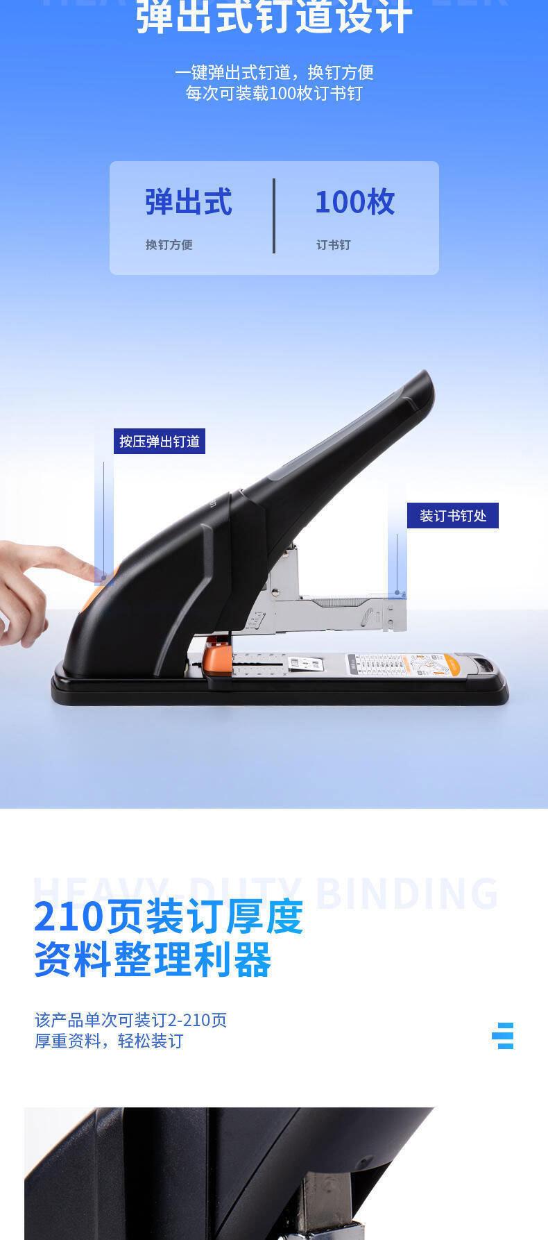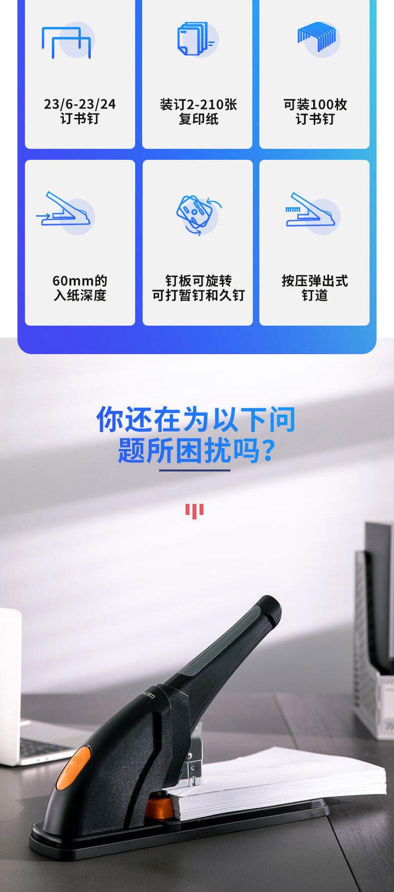 Deli 0385 Grapadora 210 Páginas Oficina Grande Financiera Encuadernadora Grapadora de Alta Resistencia Engrosada Ahorradora de Trabajo