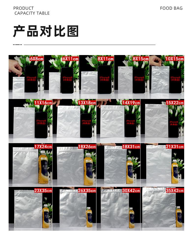 Silver; 6*8 aluminum foil flat bottom bag (right angle);PET/AL/PE