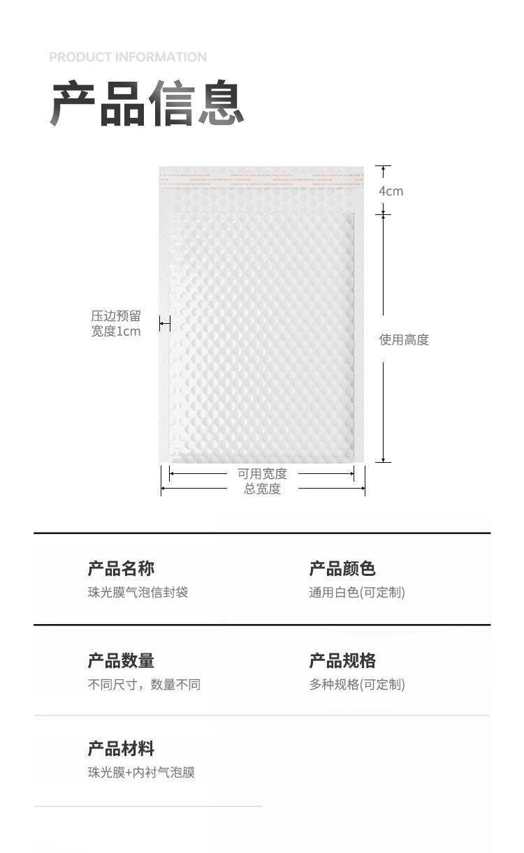 Bolsa de Burbujas de Película Perlada de 100 g, Bolsa de Espuma, Embalaje de Ropa Bolsa a Prueba de Golpes, Bolsa Sobre de Burbujas, Estilo de Sobre Personalizable