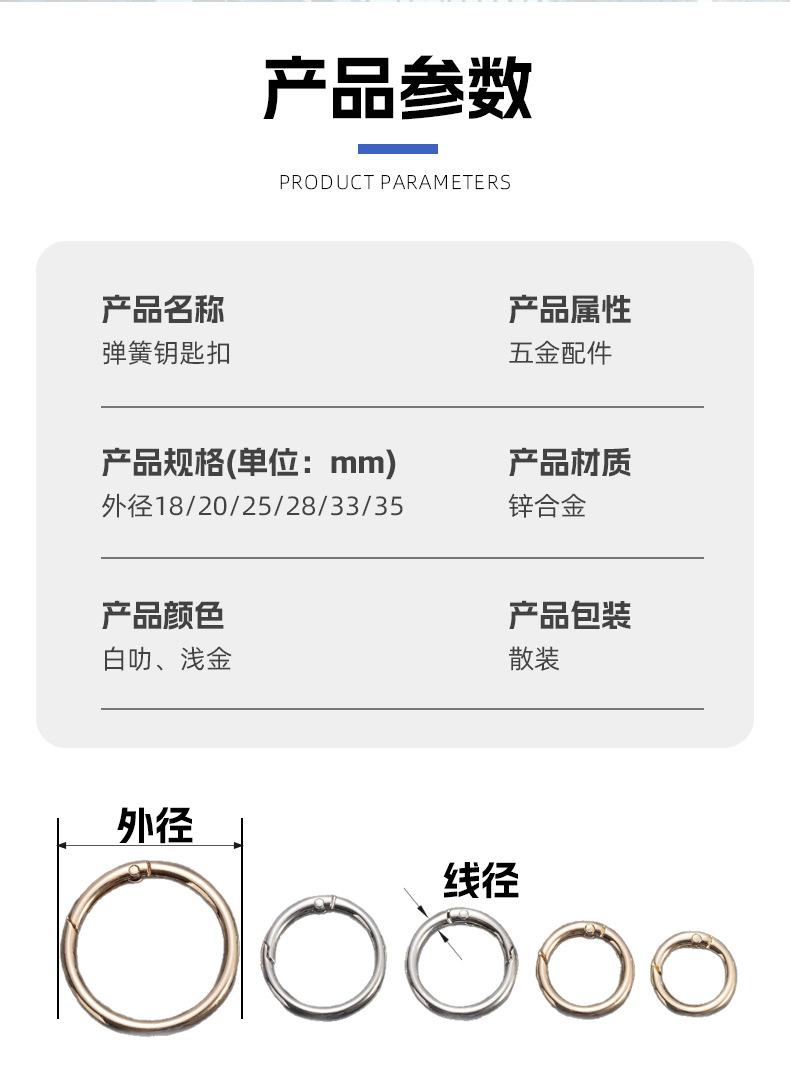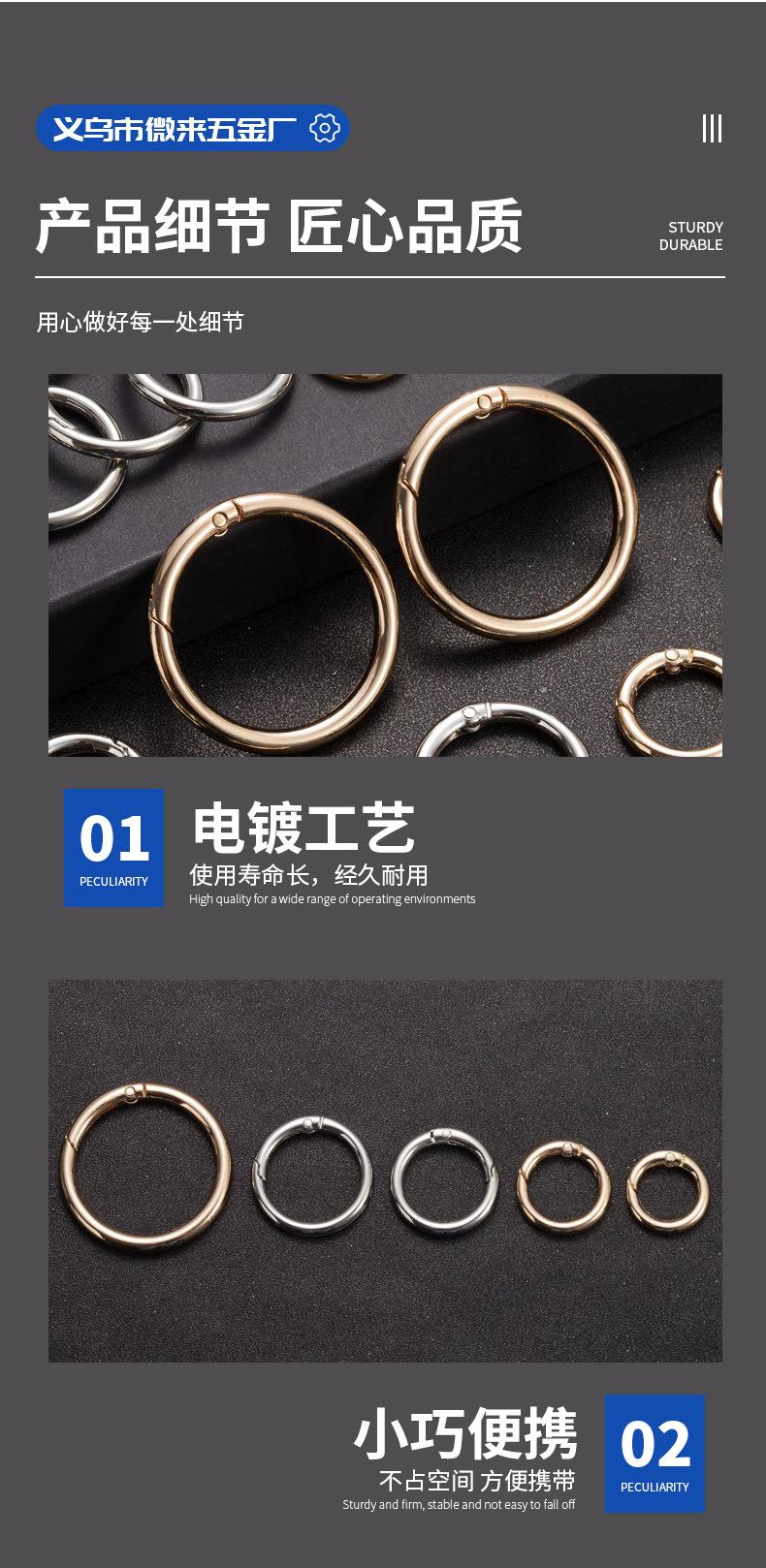 Anillo de Resorte de Metal Anillo Abierto Llavero Aleación de Zinc Hebilla Redonda Llavero Multiespecificación Accesorios para Equipaje Gancho Hebilla Hebilla