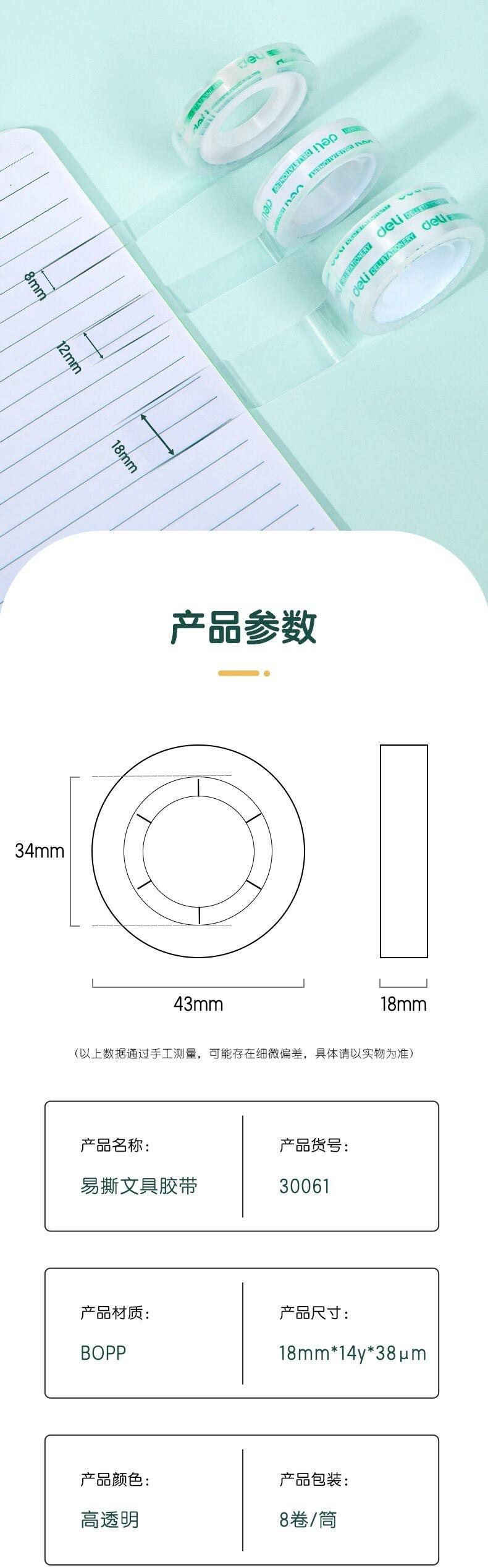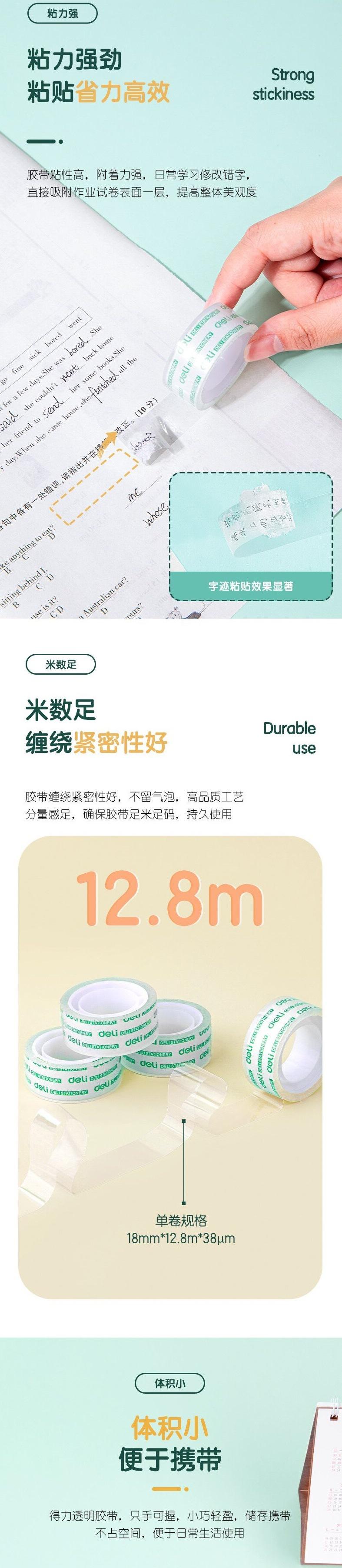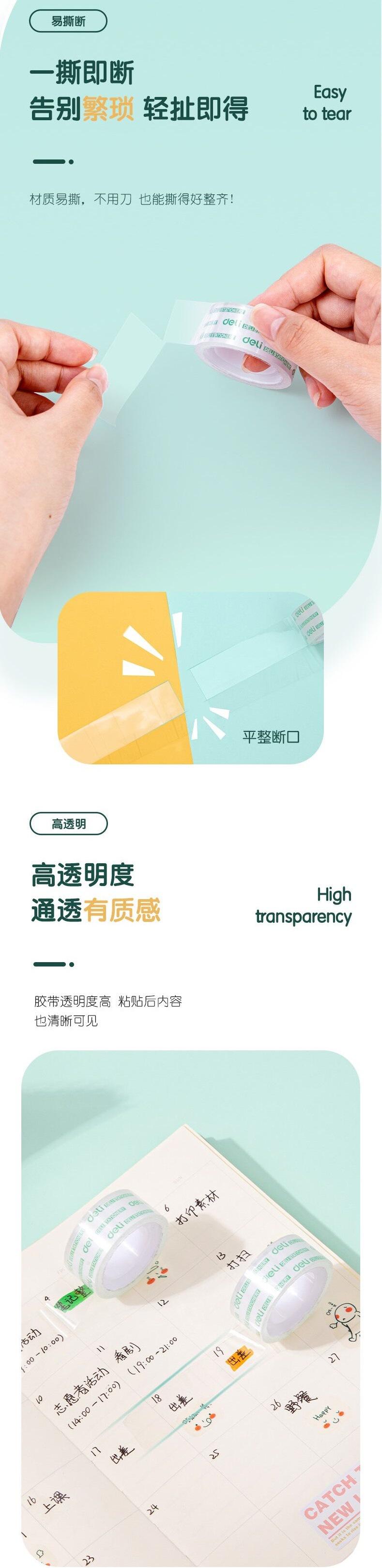 Cinta de papelería Deli 30061 cinta transparente de 1.8 cm de ancho cinta adhesiva pequeña adhesivo para papelería adhesivo para vidrio fácil de rasgar
