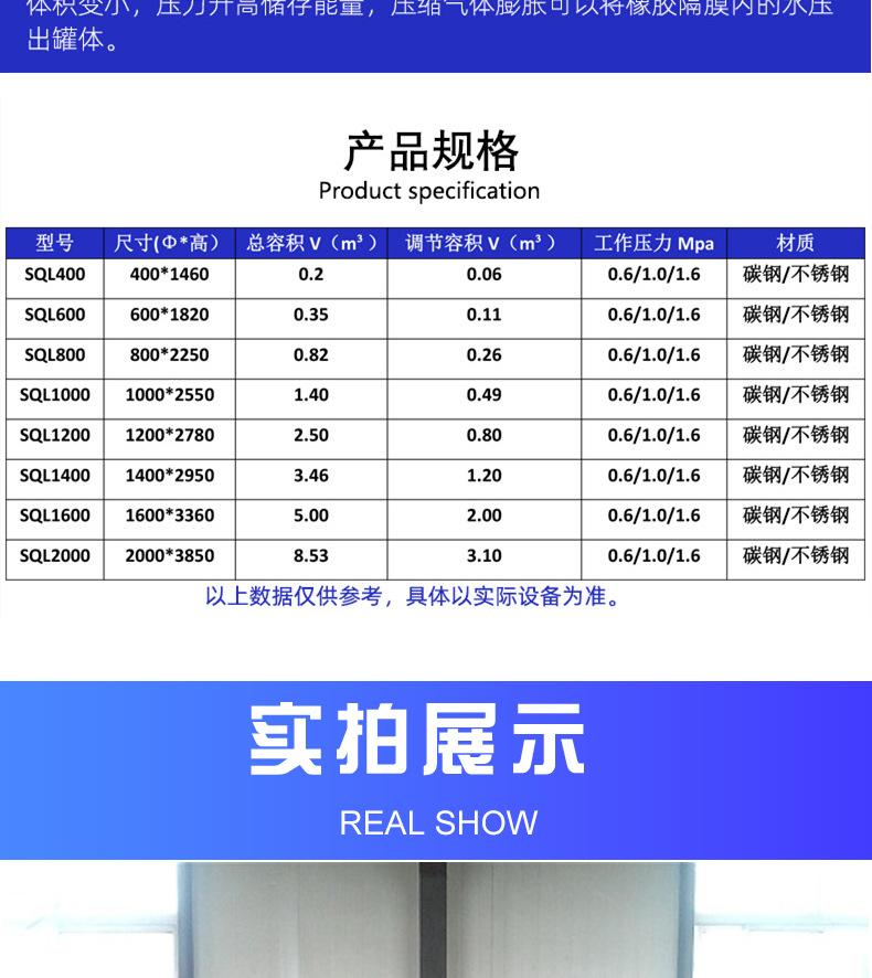 Suministro Tanque de presión de aire de diafragma SQL 800 tanque de presión de aire de diafragma con certificado de recipiente a presión tanque de presión de aire de diafragma