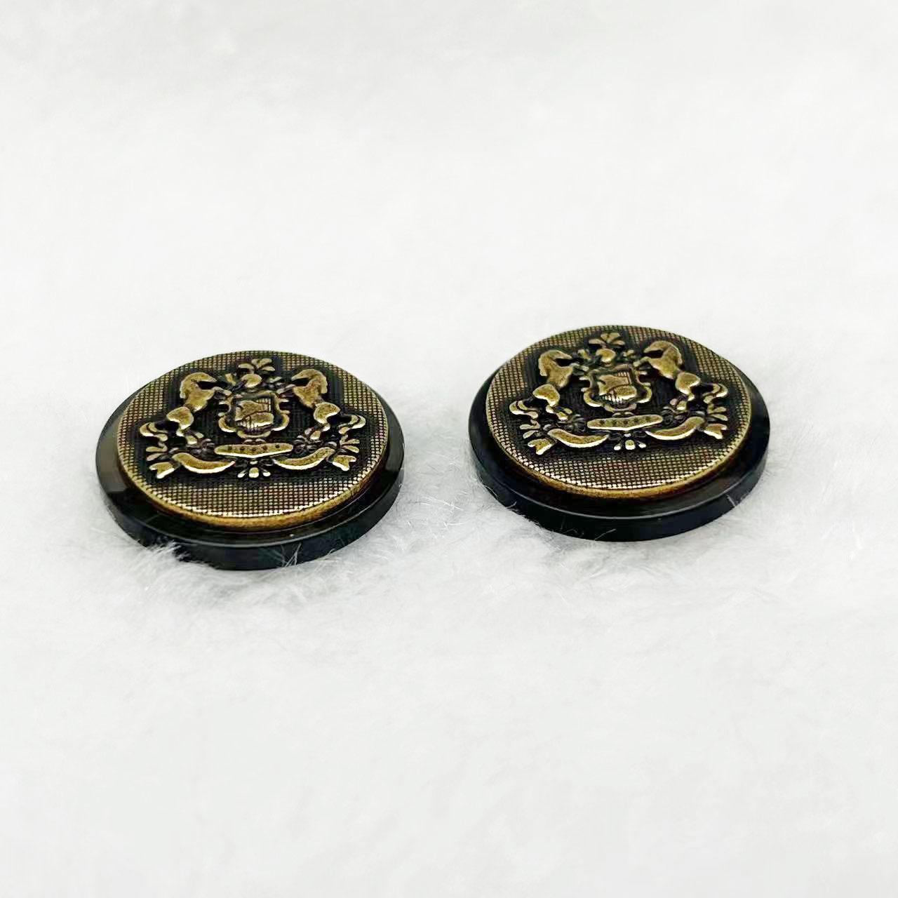 Botón metálico vintage británico con patrón de doble león, abrigo, cortavientos, traje, suéter, abrigo suéter, tapeta, botón