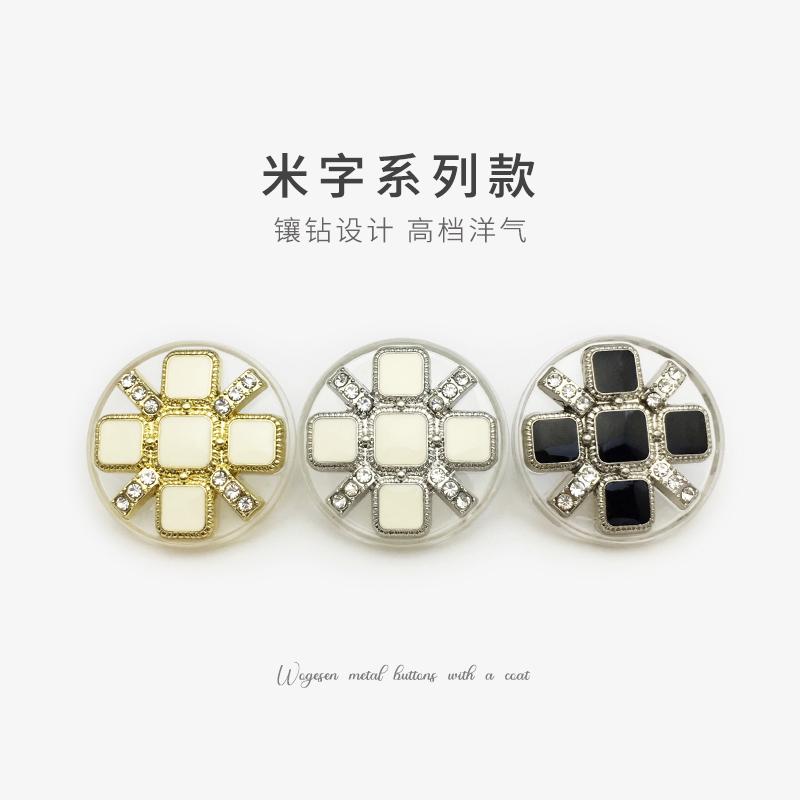 Botón Metálico en Forma de Arroz Botón Decorativo para Chaqueta de Traje Top para Mujer Abrigo de Lana Suéter Redondo con Accesorios de Botón de Diamante