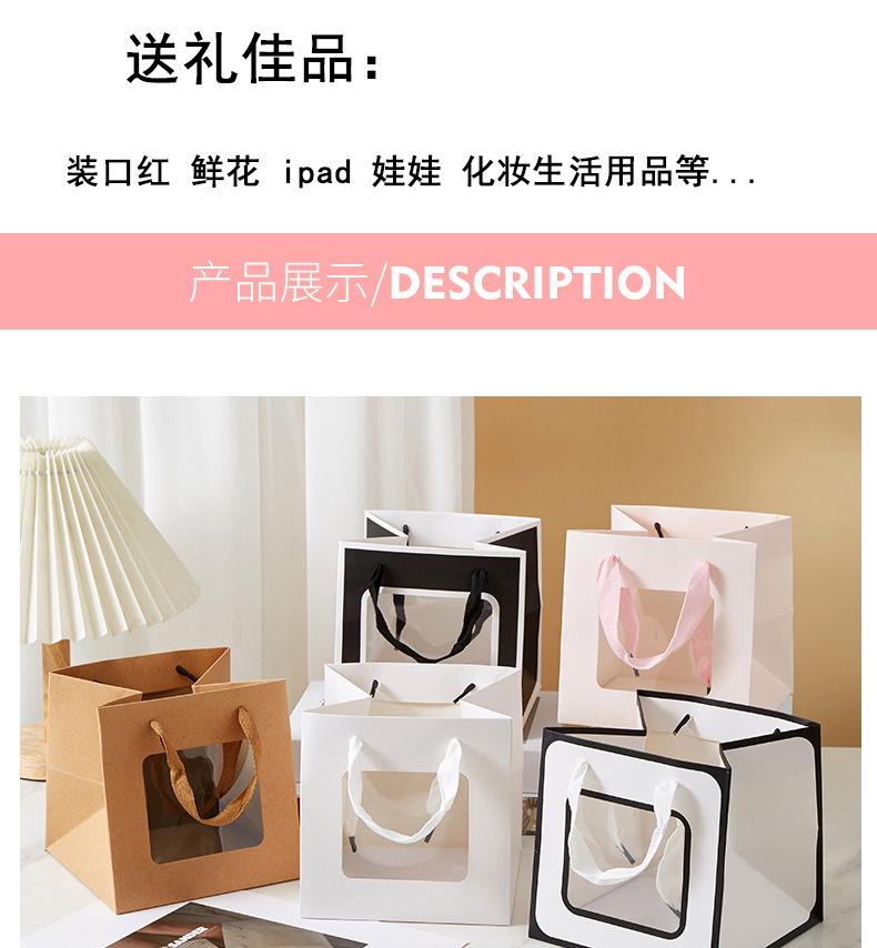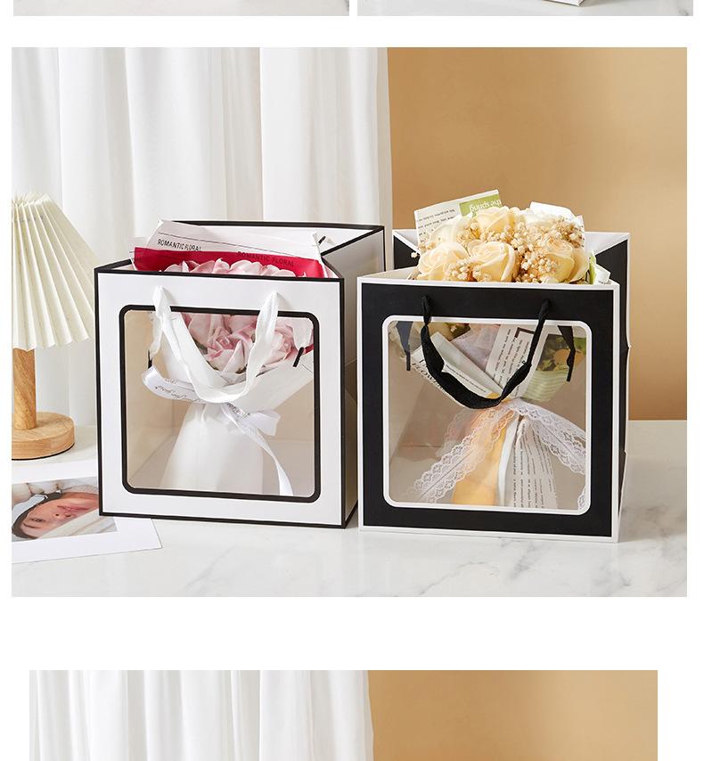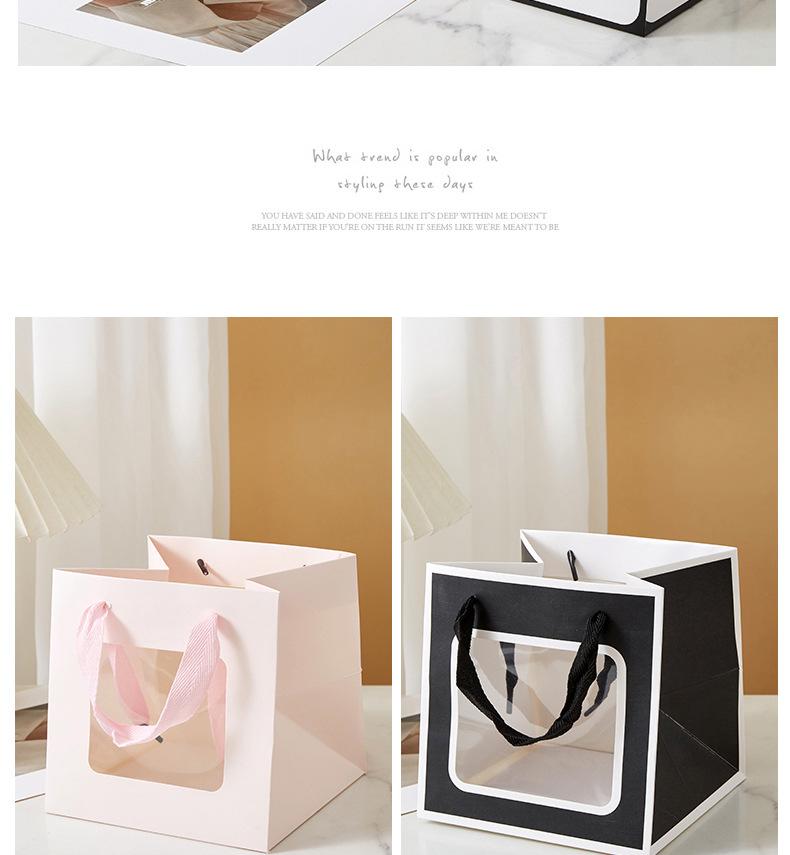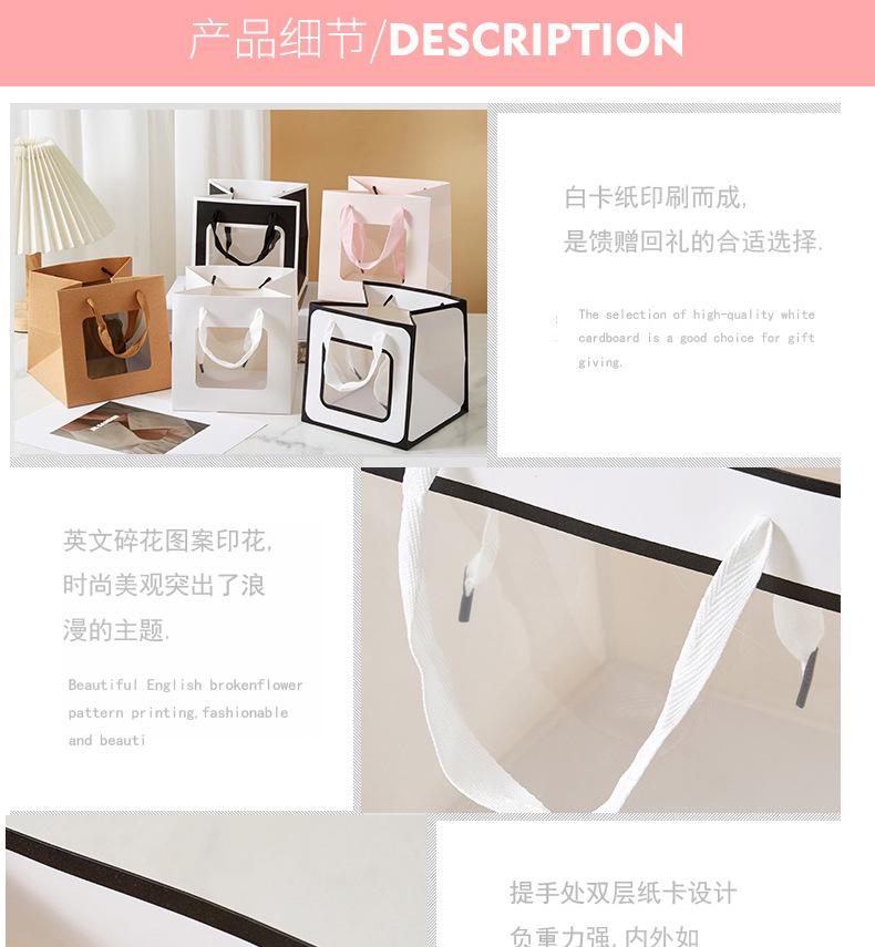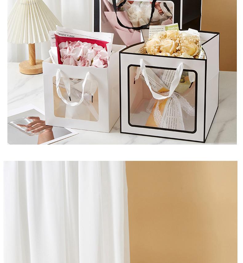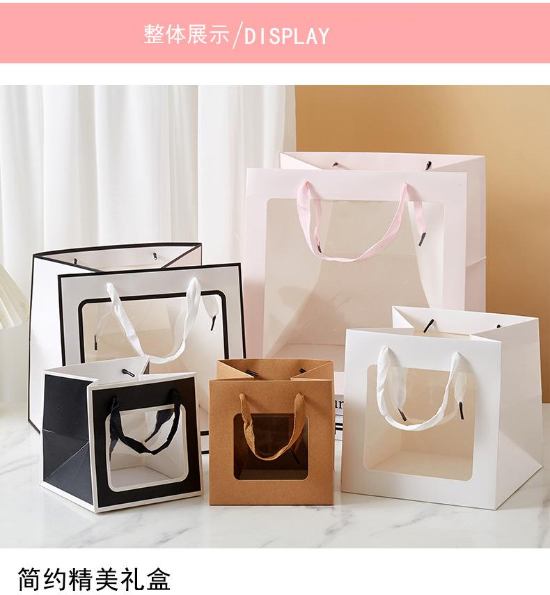 Bolsa de embalaje cuadrada gruesa, bolsa de regalo de fondo ancho con flores para bodas, bolsa de regalo portátil con ventana transparente, bolsa de papel al por mayor