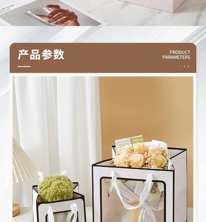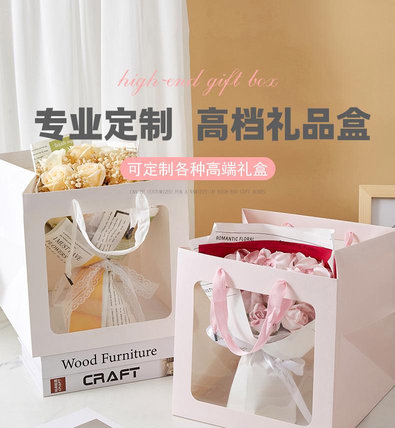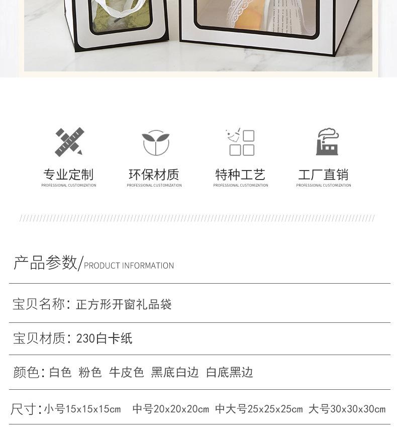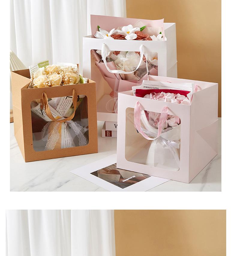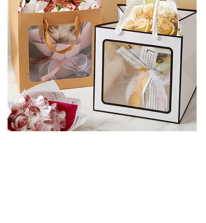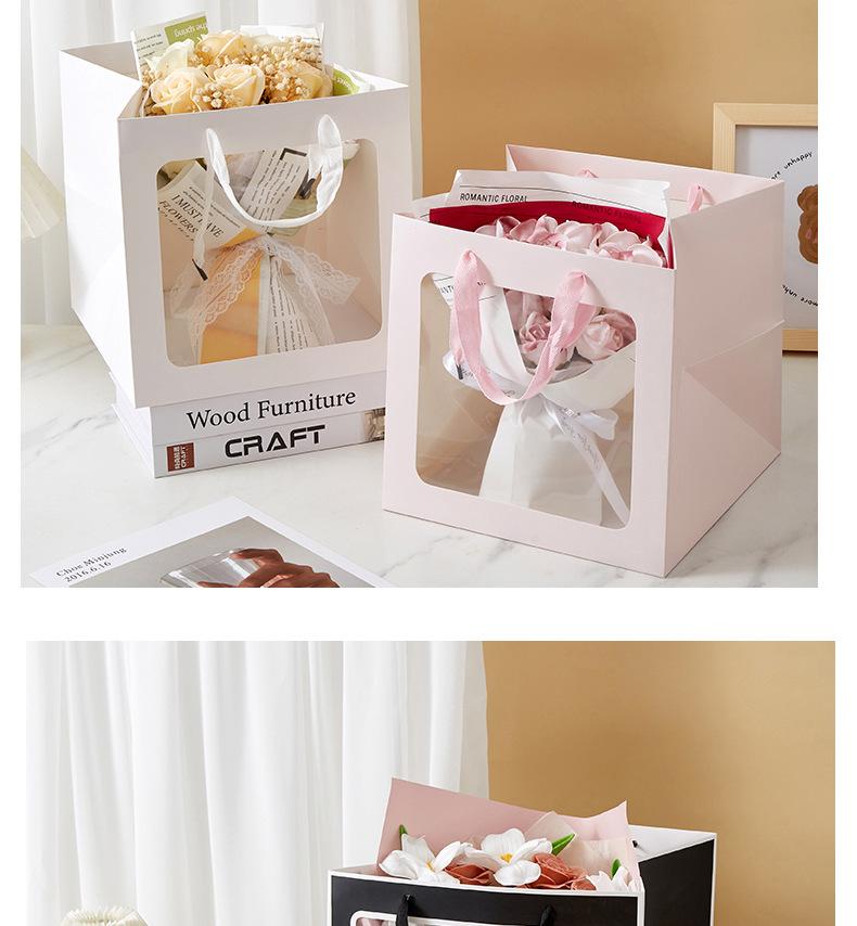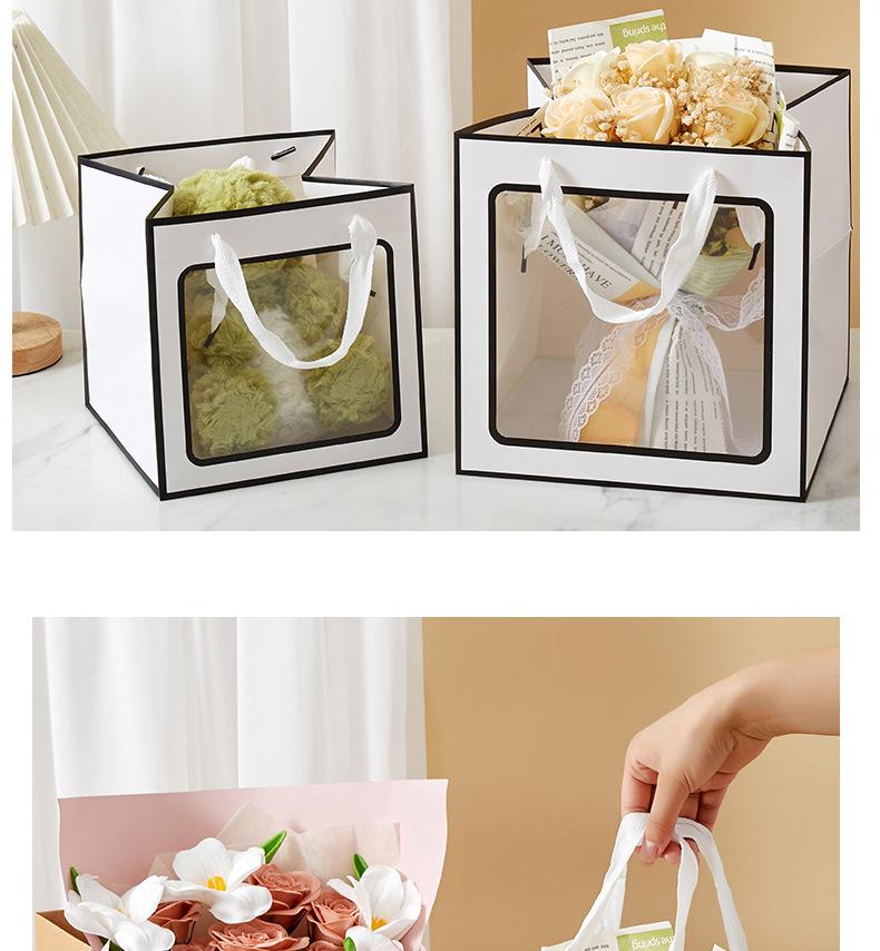 Bolsa de embalaje cuadrada gruesa, bolsa de regalo de fondo ancho con flores para bodas, bolsa de regalo portátil con ventana transparente, bolsa de papel al por mayor
