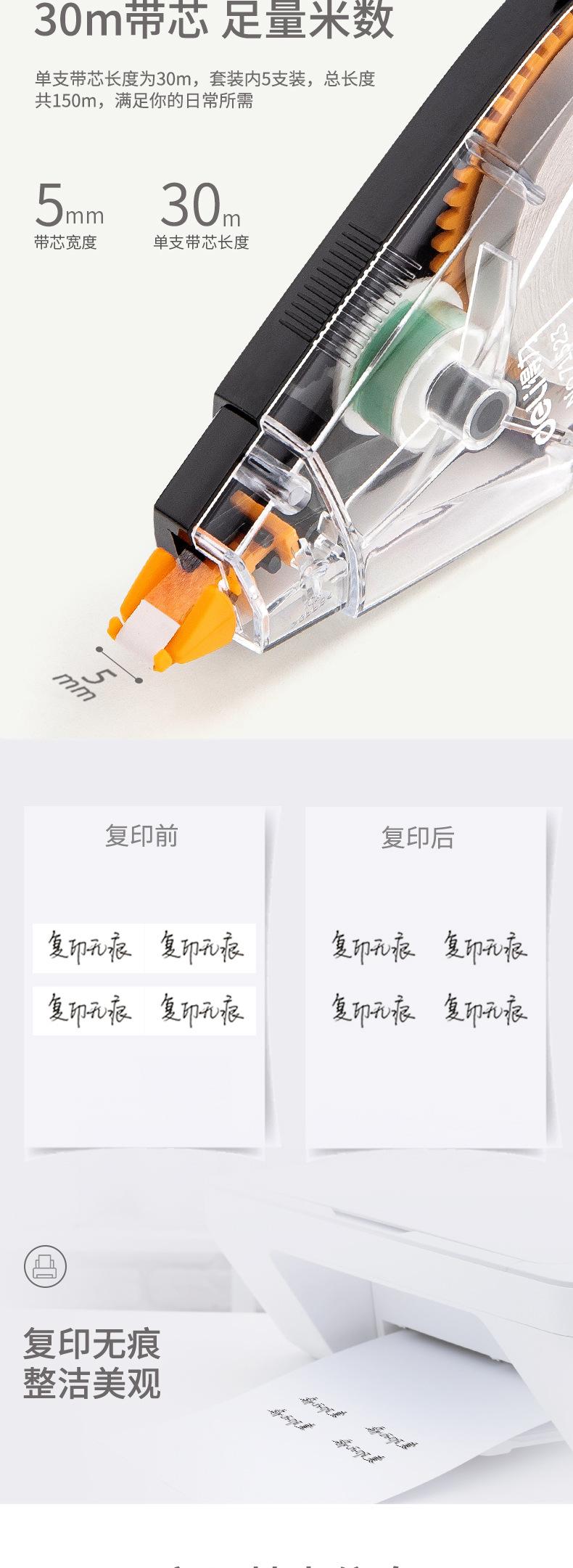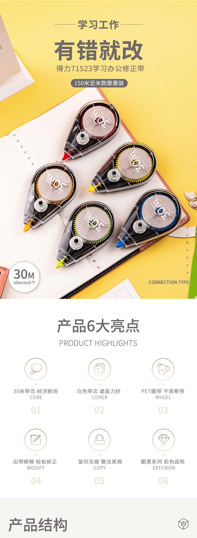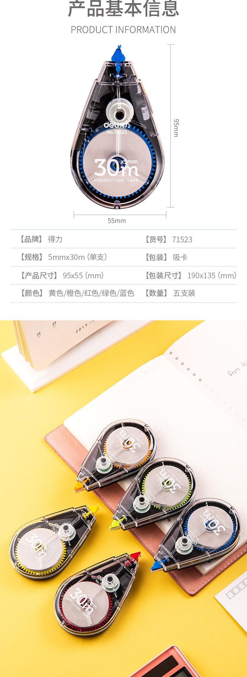 Cinta correctora Deli 71523, cinta correctora de 5 mm x 30 m, cinta correctora creativa, papelería para estudiantes, 5 unidades por tarjeta