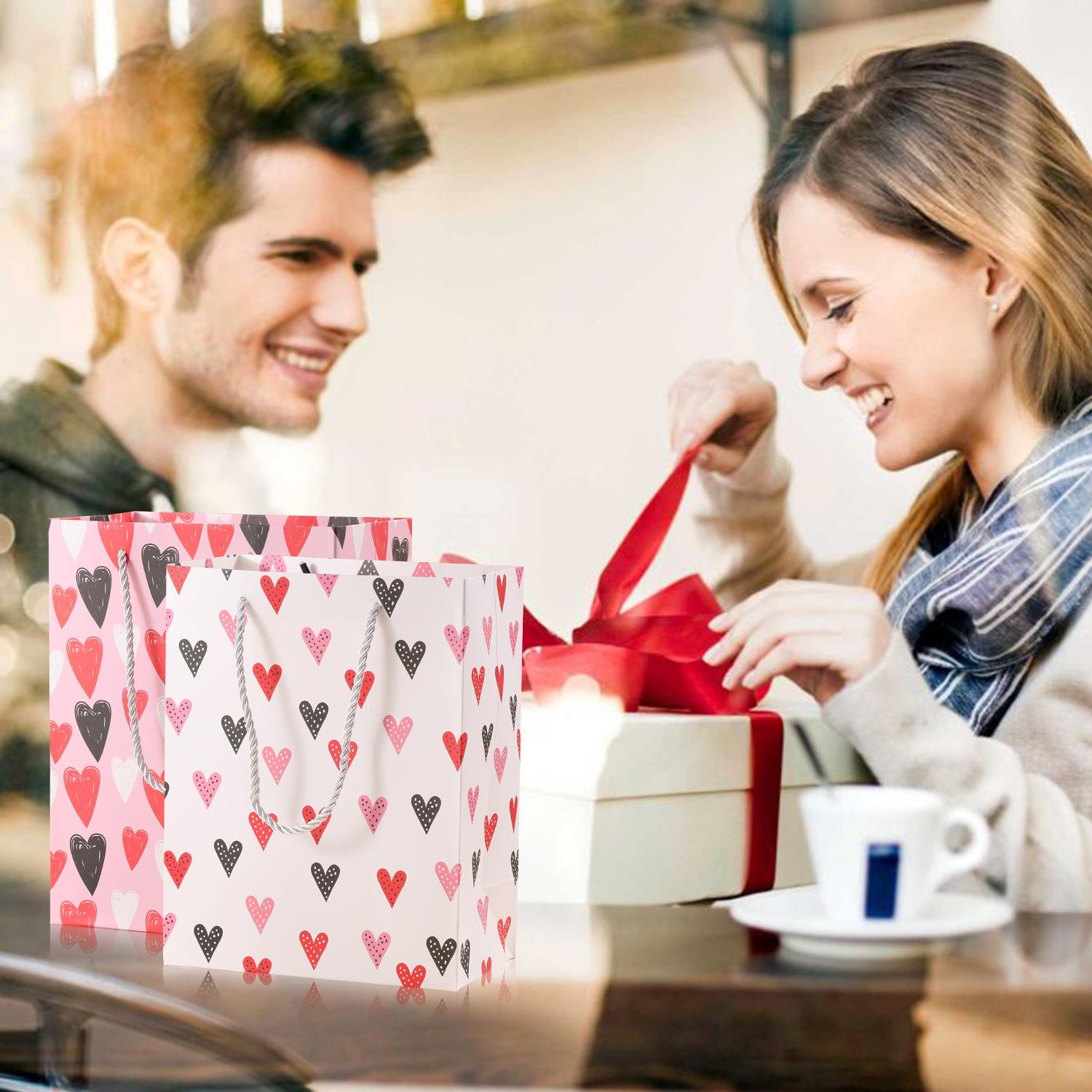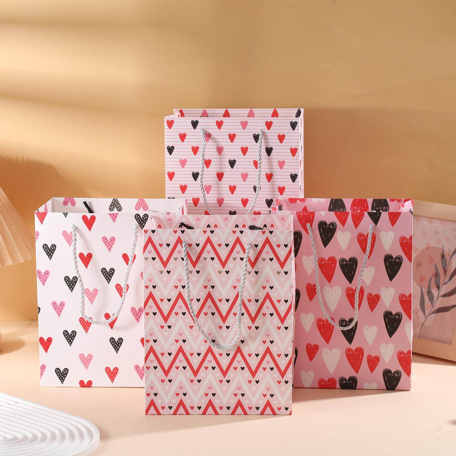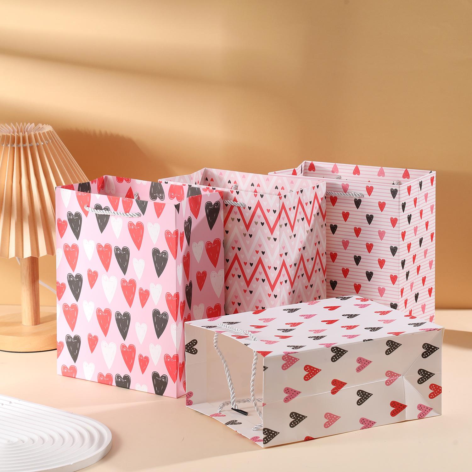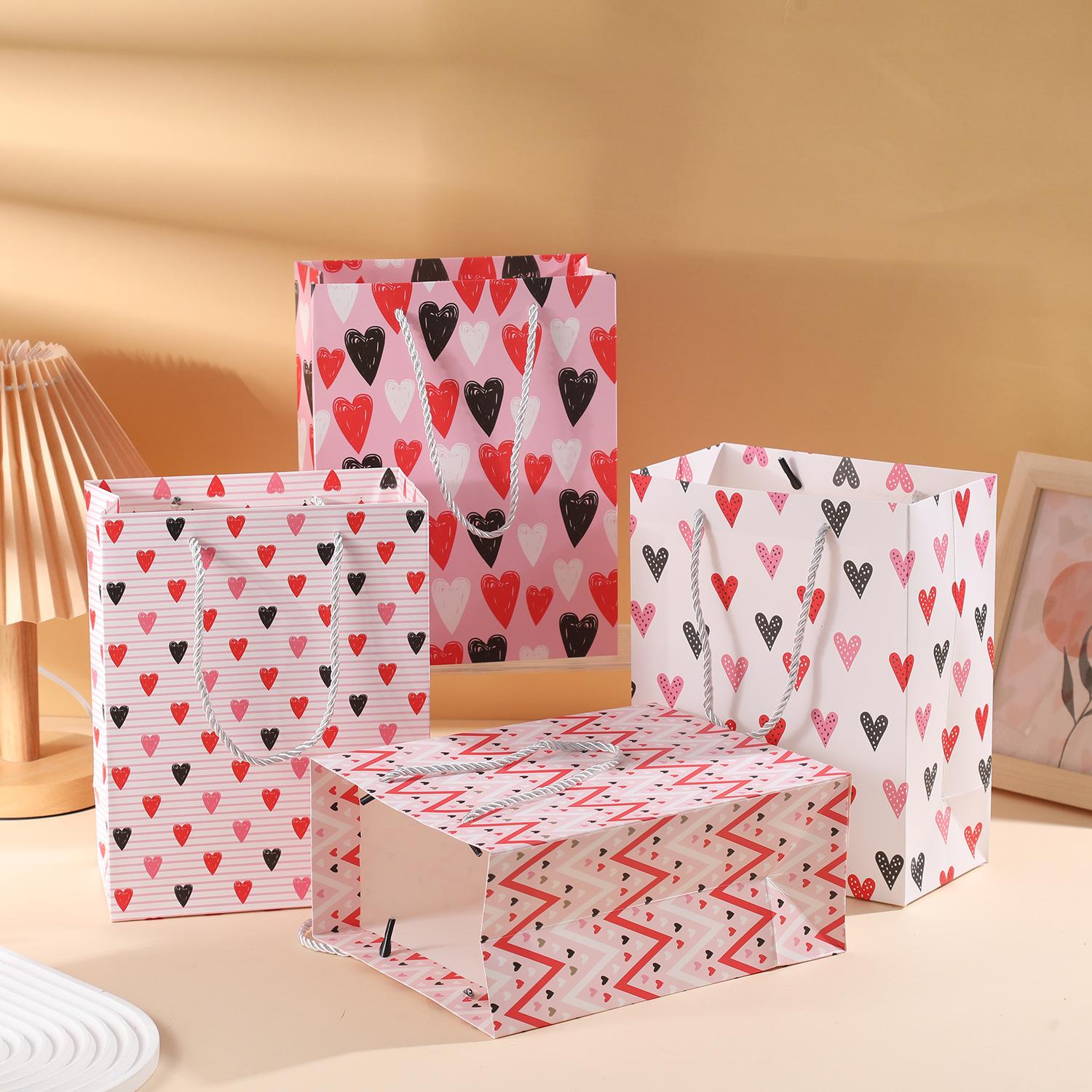 Bolsa de regalo con estampado de amor de cartón blanco transfronterizo para San Valentín, embalaje de regalo, bolsa de regalo de cumpleaños, bolsa de papel