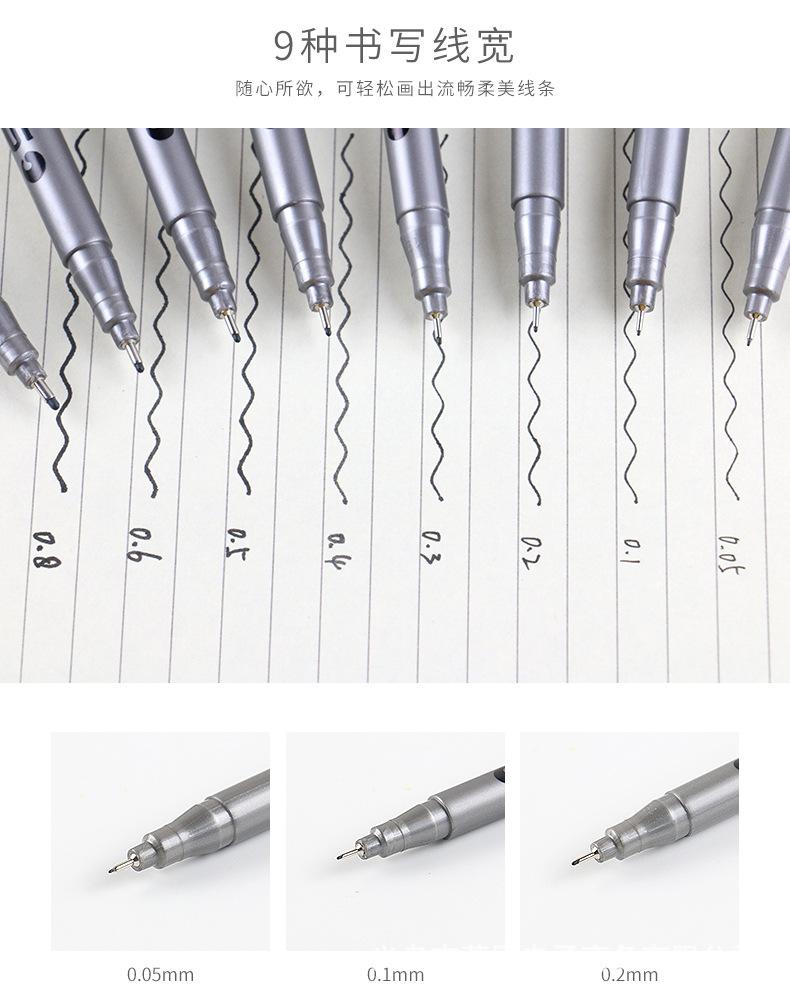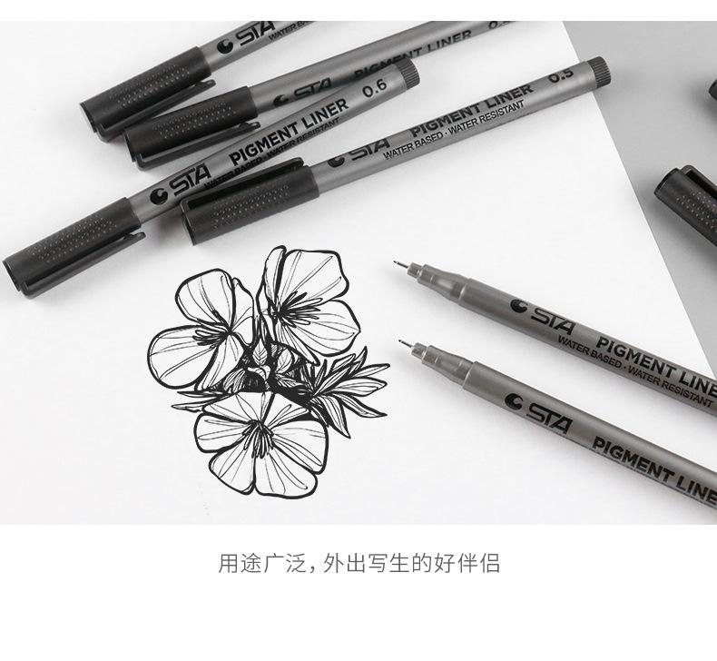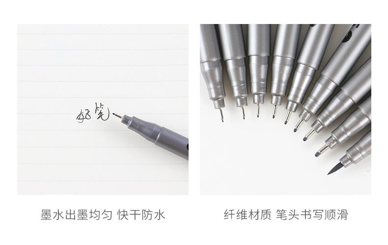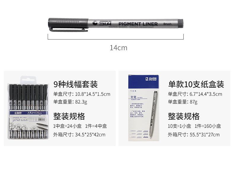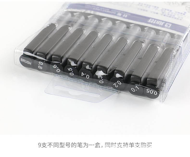 Este producto utiliza tinta pigmentada negra, que tiene un fuerte poder de tinción, capacidad de ocultación, resistencia al agua y a la luz; se usa ampliamente en dibujo, boceto, diseño, firma, bosquejo, producción de cómics, producción de borradores negros, archivos y escritura financiera, etc.