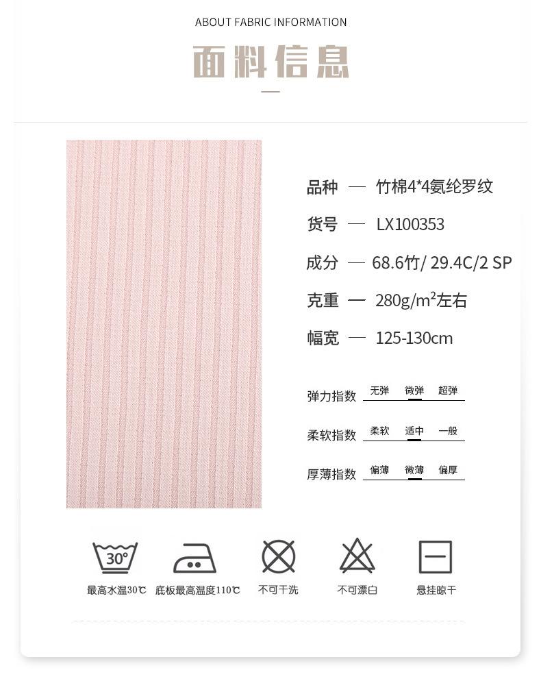 Tela tejida de punto acanalada elástica de algodón de bambú 4*4 spandex 280g acanalado de piqué camiseta básica de mujer tela para ropa de casa