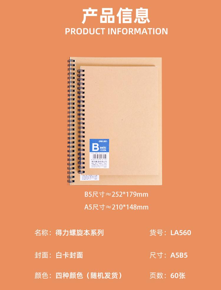 Libreta Deli Libreta de Espiral Papel Kraft Estudiante Universitario Libreta de Espiral Literaria Exquisita Engrosada Bloc de Notas para Negocios