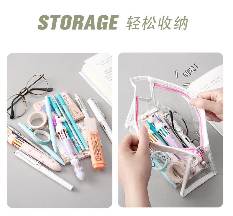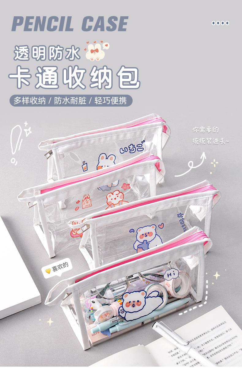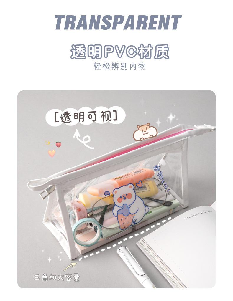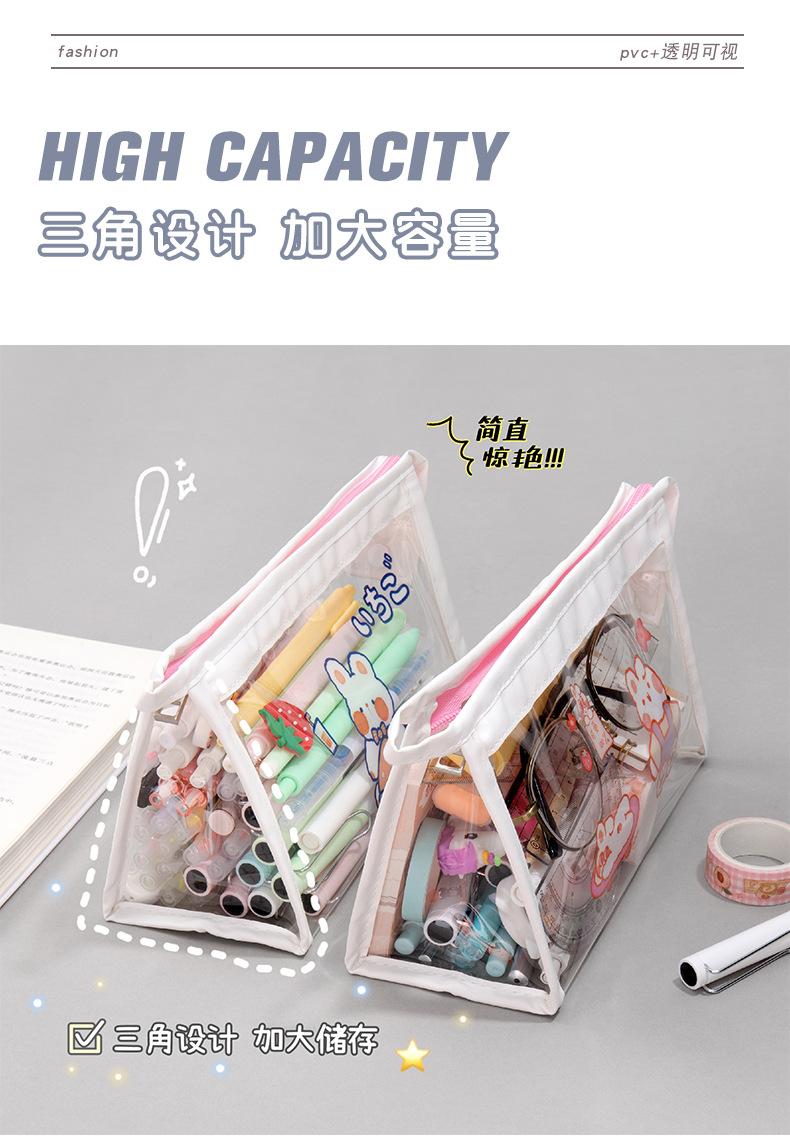 Estuche Transparente de Gran Capacidad de Dibujos Animados Bolsa de Papelería Impermeable para Estudiantes Bolsa de Almacenamiento Triangular Papelería al por Mayor Transparente Impermeable