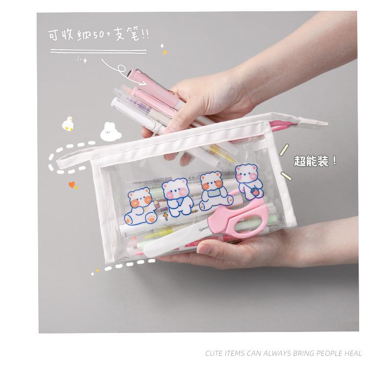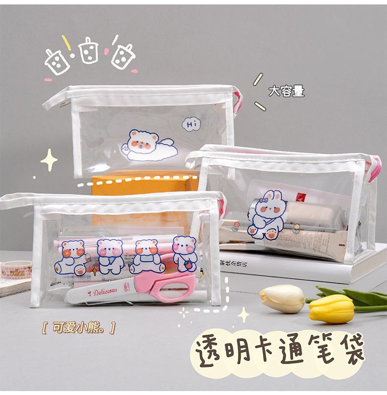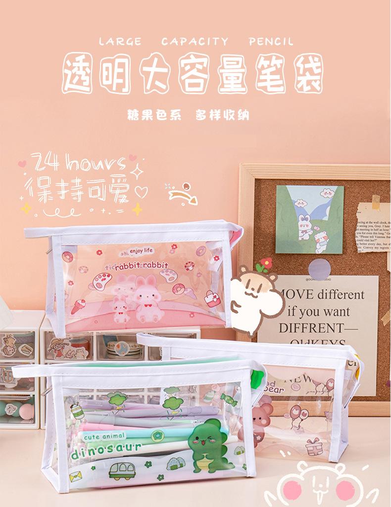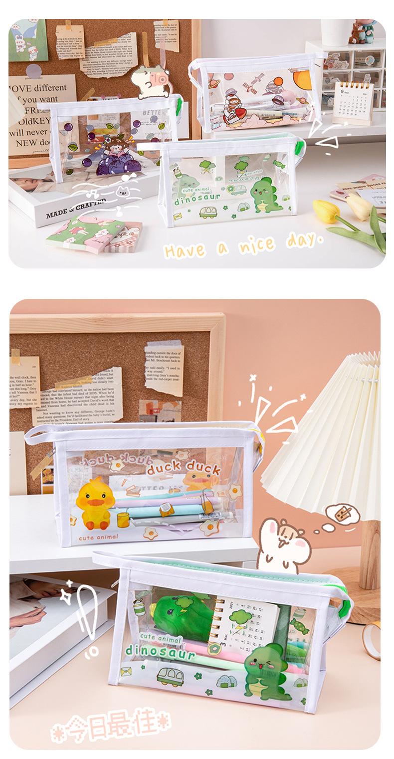 Estuche Transparente de Gran Capacidad de Dibujos Animados Bolsa de Papelería Impermeable para Estudiantes Bolsa de Almacenamiento Triangular Papelería al por Mayor Transparente Impermeable