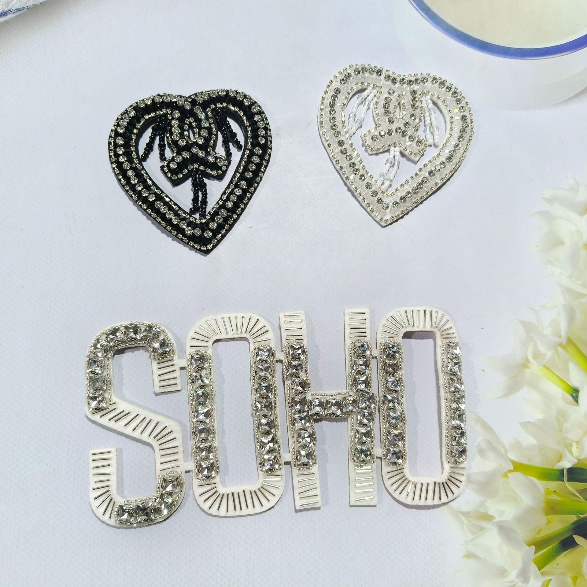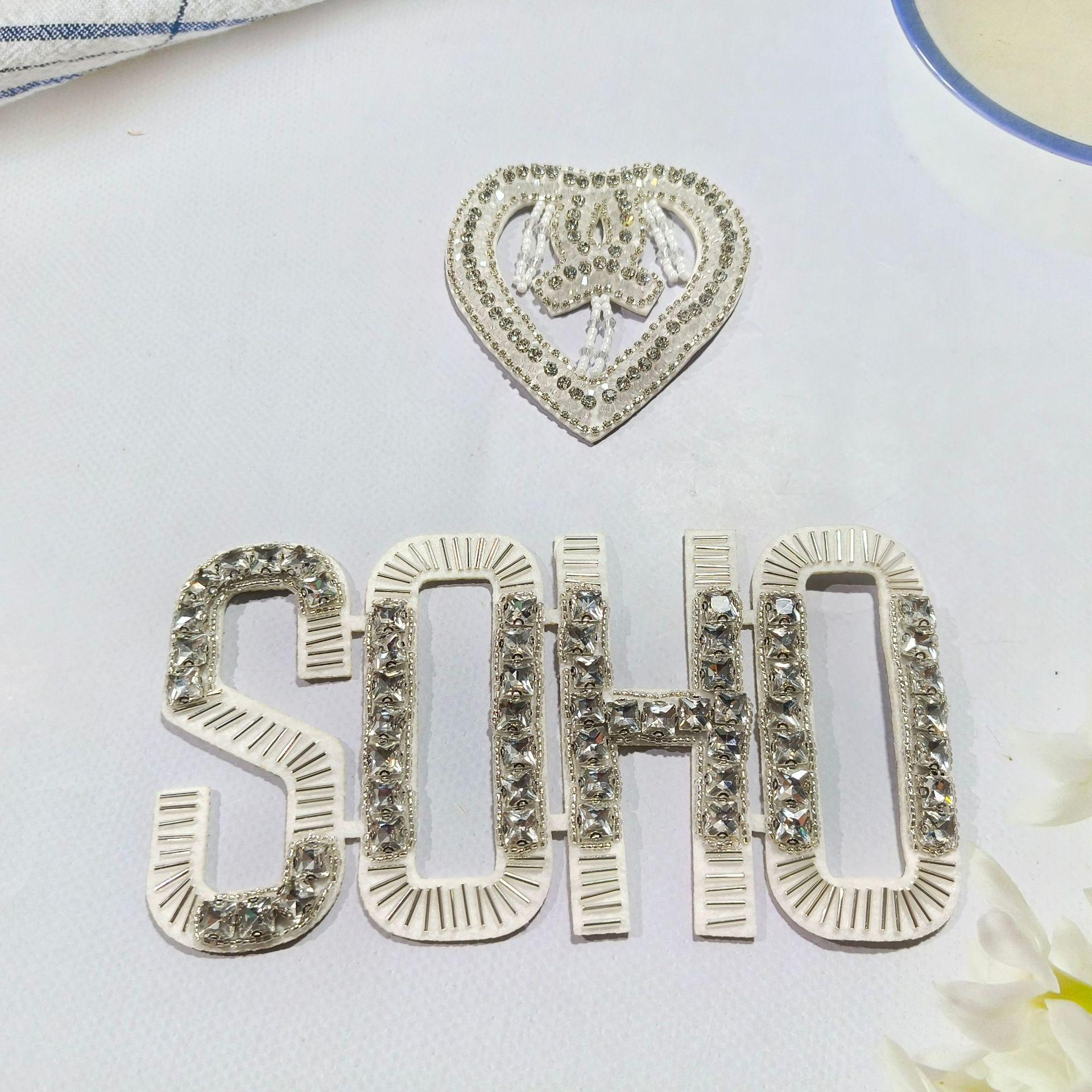 Nueva venta al por mayor de pegatinas de tela con letras de cuentas hechas a mano de estilo europeo y americano, accesorios para ropa, accesorios decorativos, parche