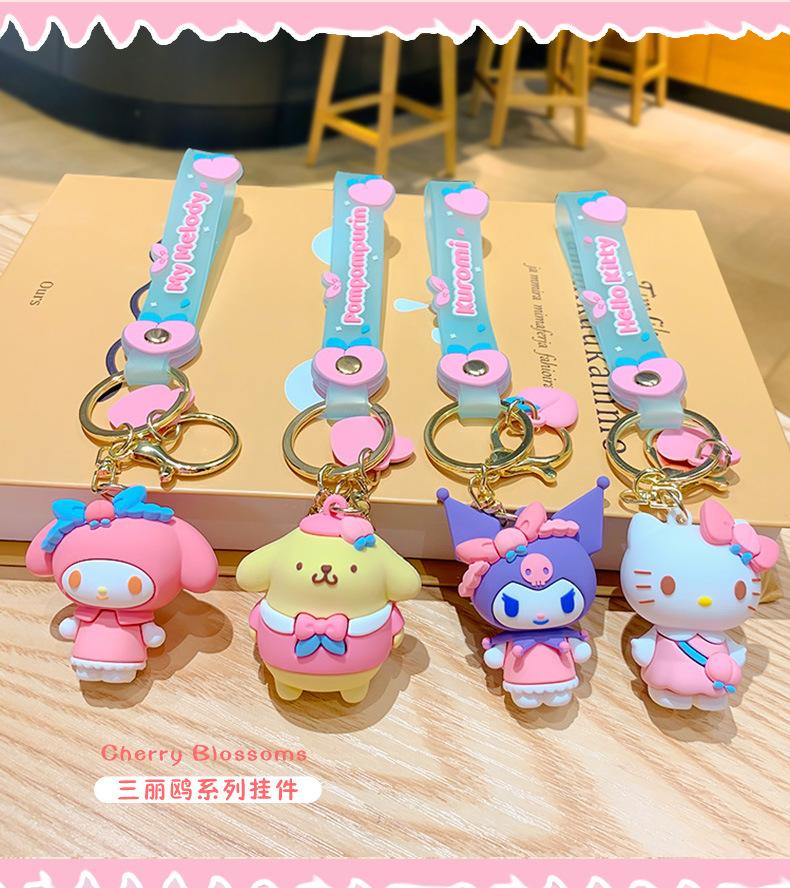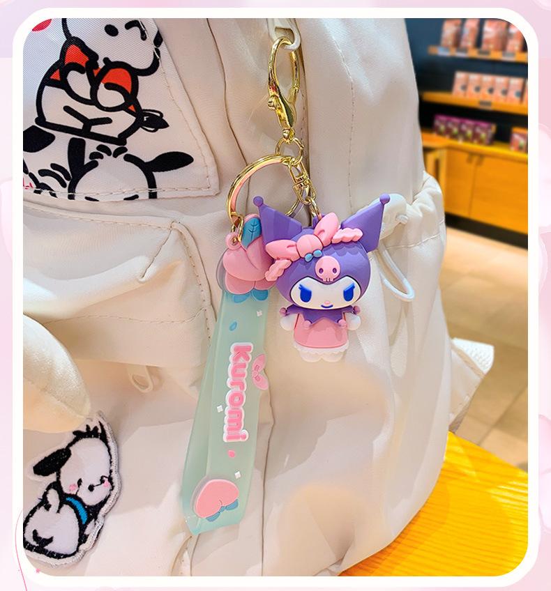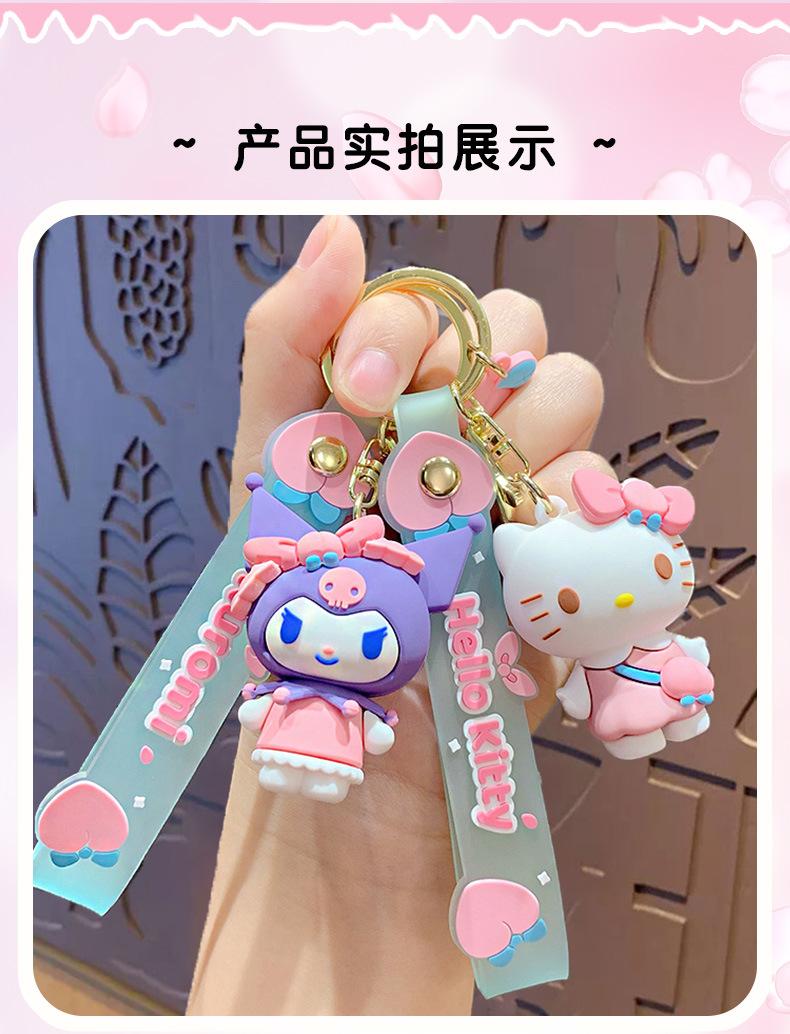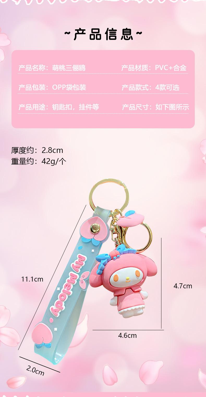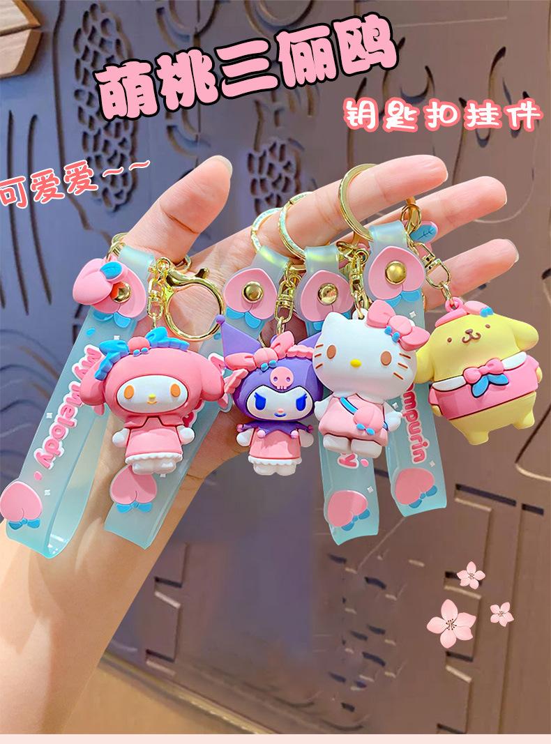 Llavero colgante de durazno lindo de dibujos animados Sanrio pareja llavero de coche adornos pequeño regalo creativo al por mayor
