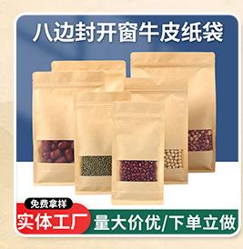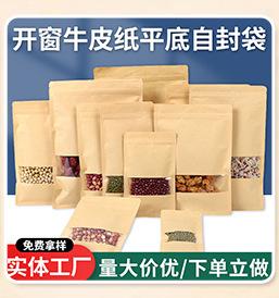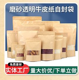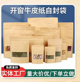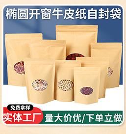 Bolsa de papel kraft con ventana, autosellable, resistente a la humedad, para alimentos, té, frutos secos, aperitivos, embalaje universal.