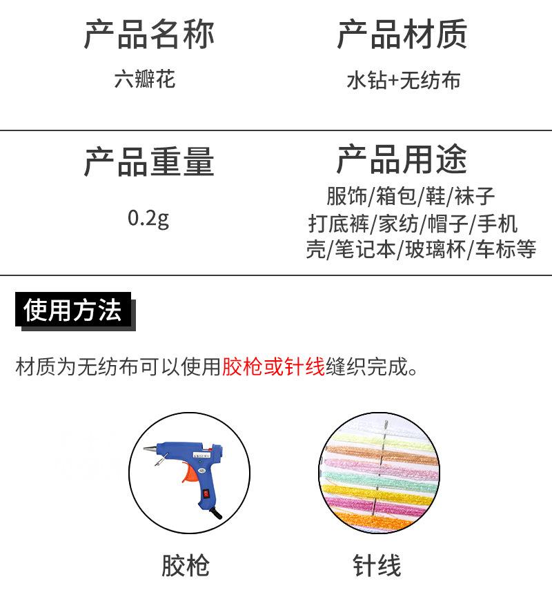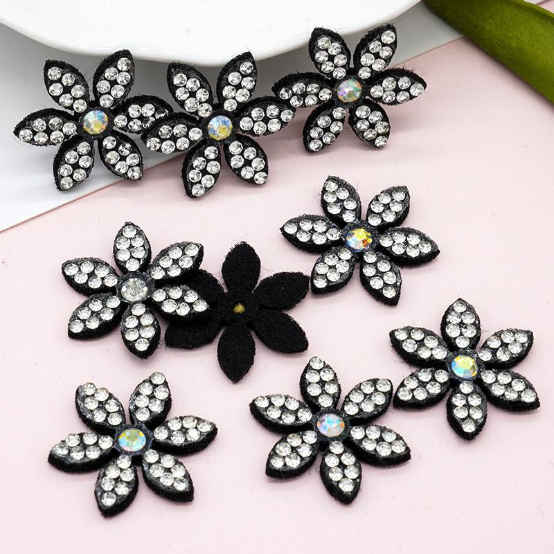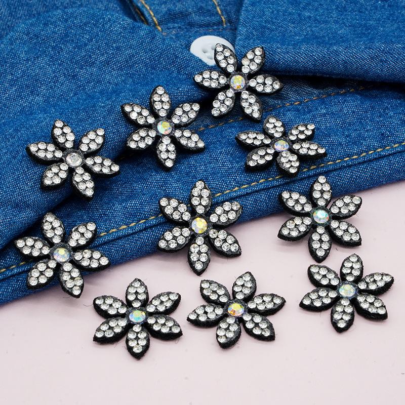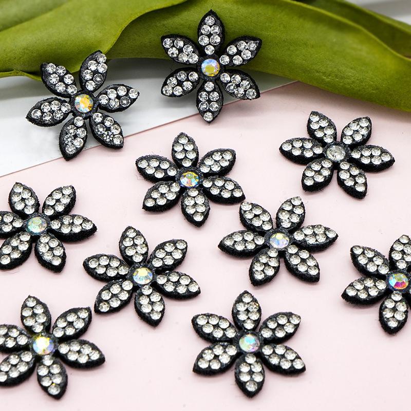 Zhaoshun flor de 6 pétalos taladro caliente figura caliente pedrería flor no tejida diy ropa equipaje decorativo flor pequeña pasta de tela al por mayor