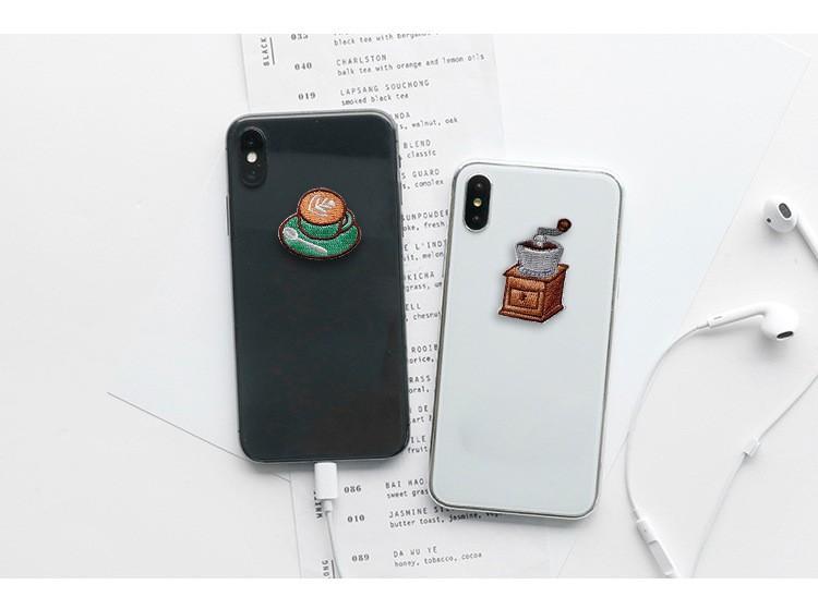 Parche Adhesivo Termoadhesivo Decorativo con Patrón de Tienda de Taza de Café de Dibujos Animados DIY Funda para Teléfono Ropa Parche para Agujeros Parche Bordado