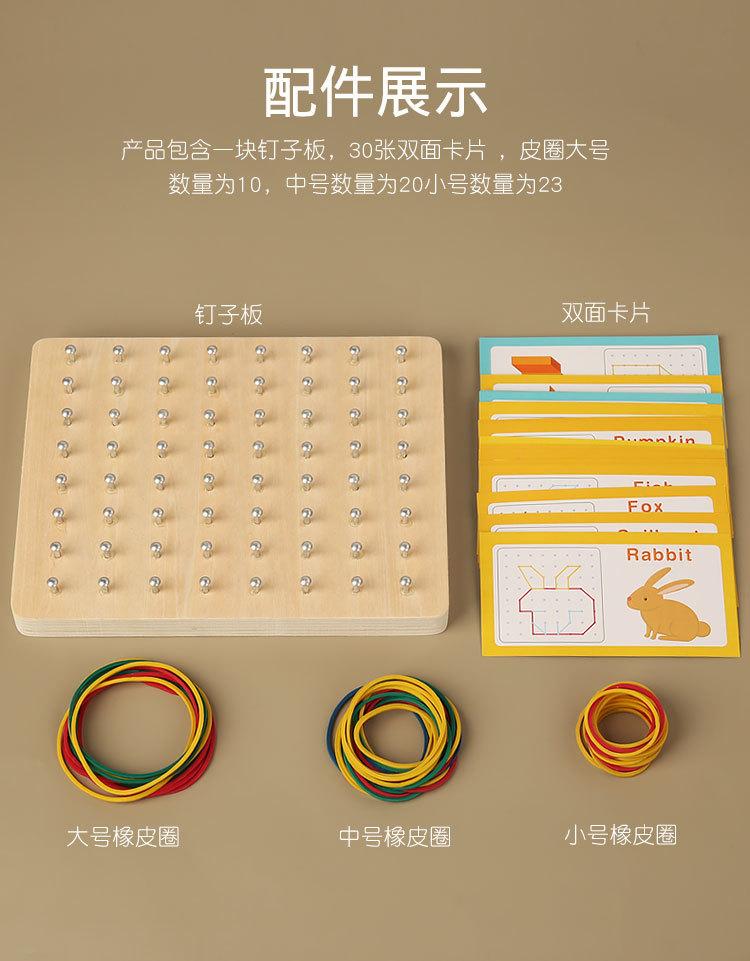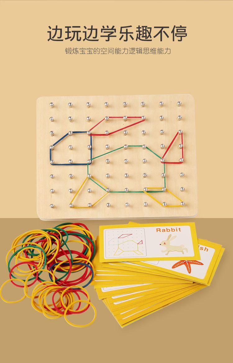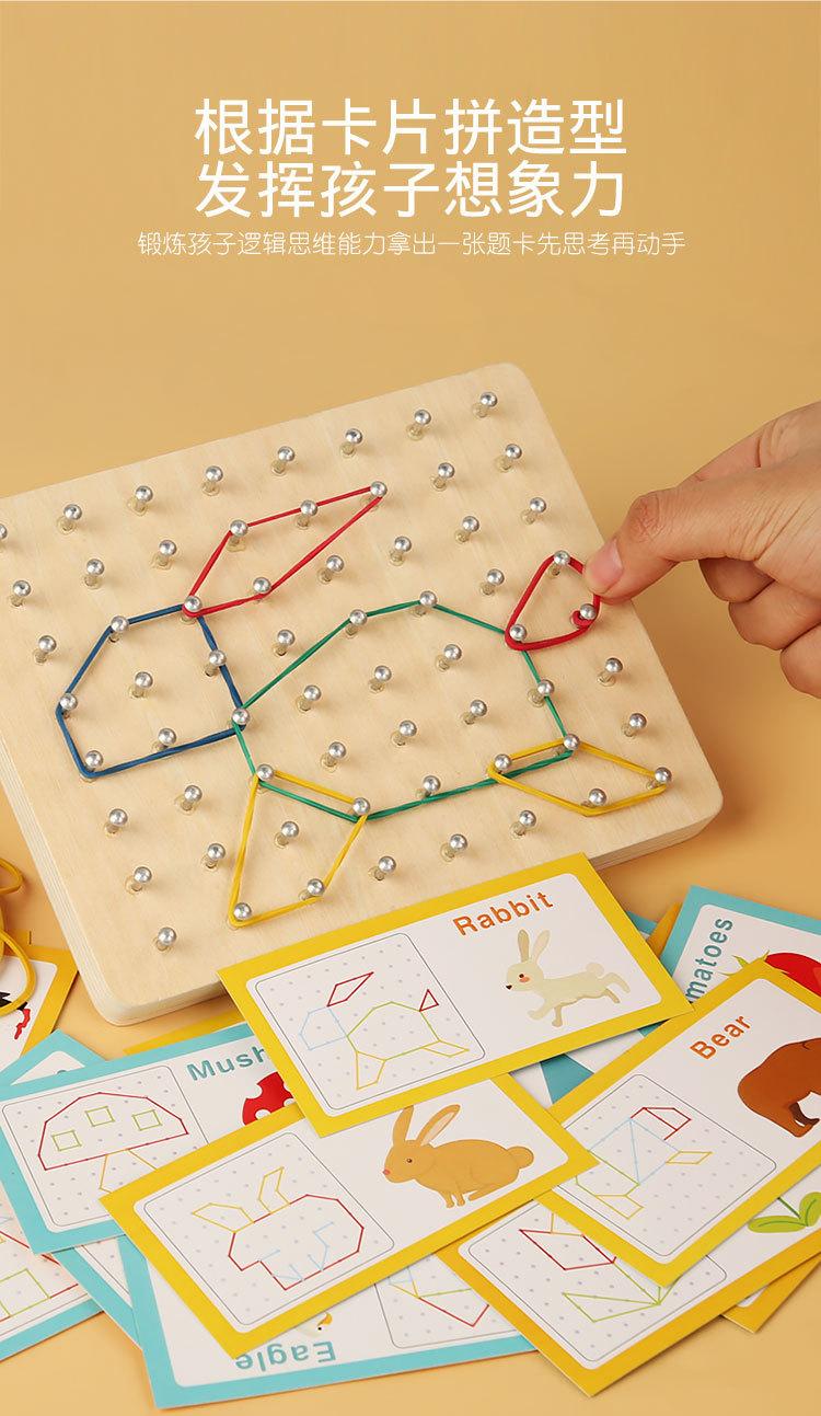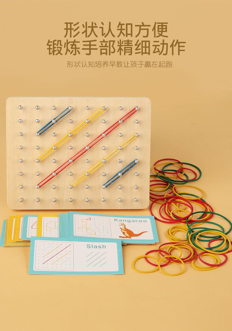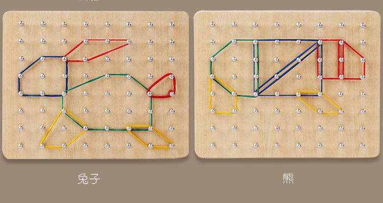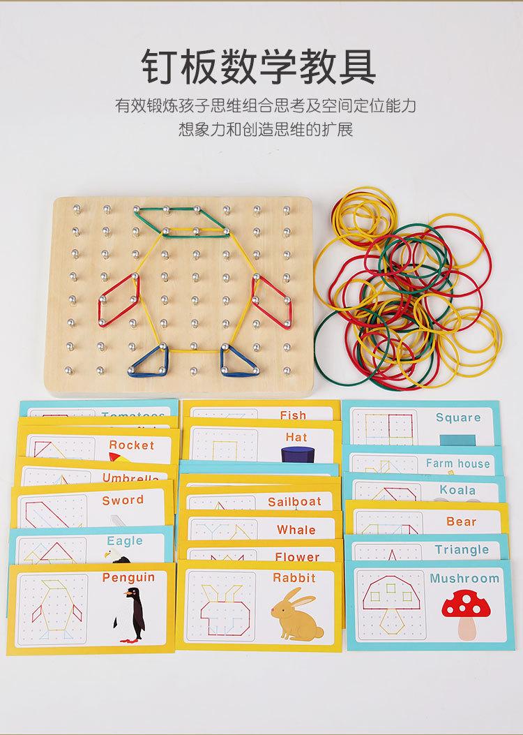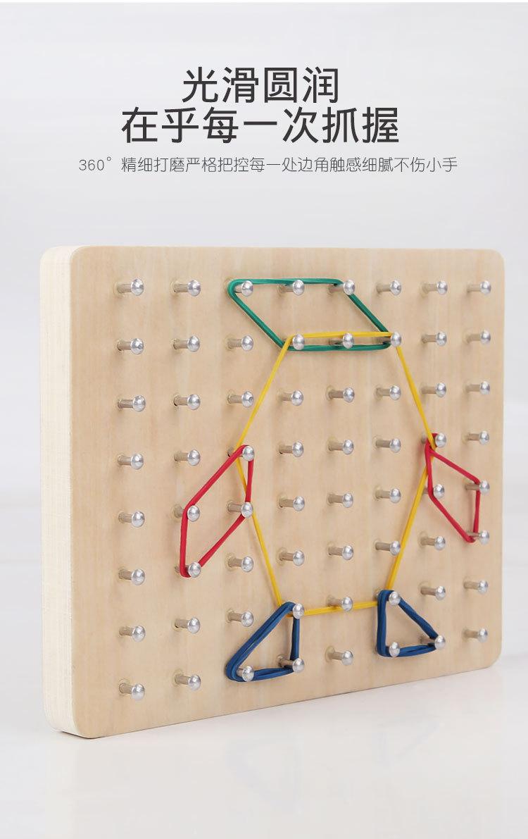 Tablero de madera Montessori con diseño geométrico pequeño y creativo para uñas, juguetes educativos para niños de la primera infancia, rompecabezas, juego de matemáticas de madera