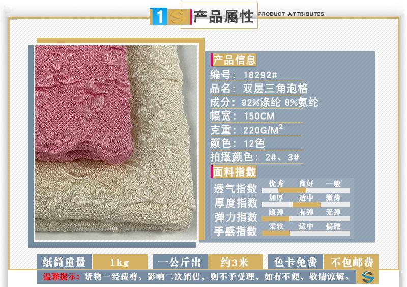 Tejido plisado de poliéster 220g doble capa triángulo burbuja celosía geométrico gofrado elástico tejido de punto para vestido en stock