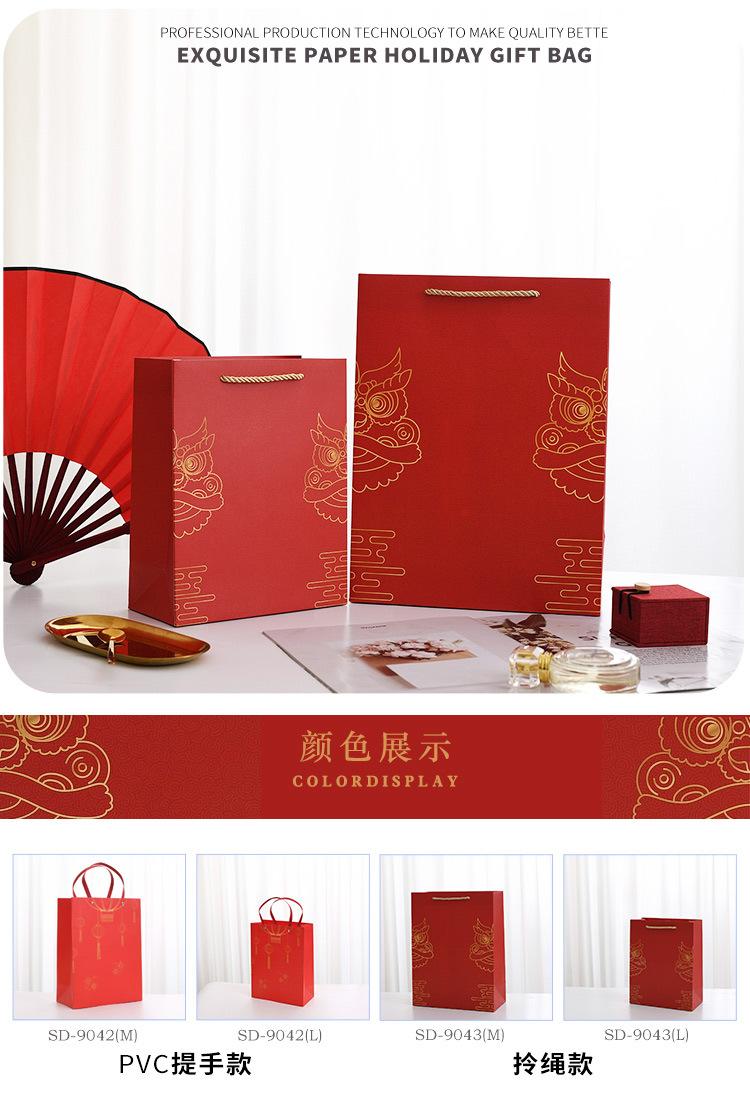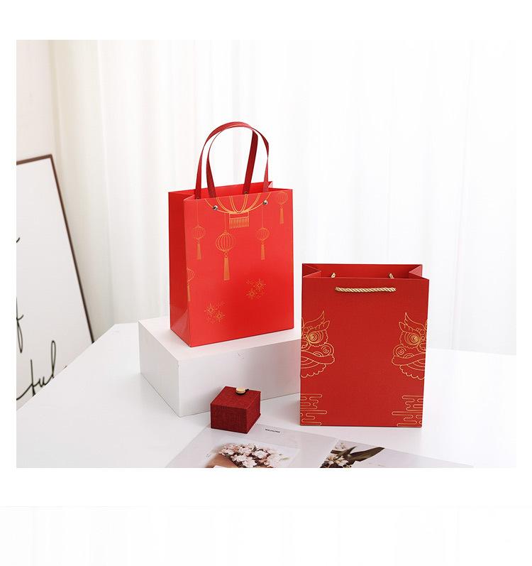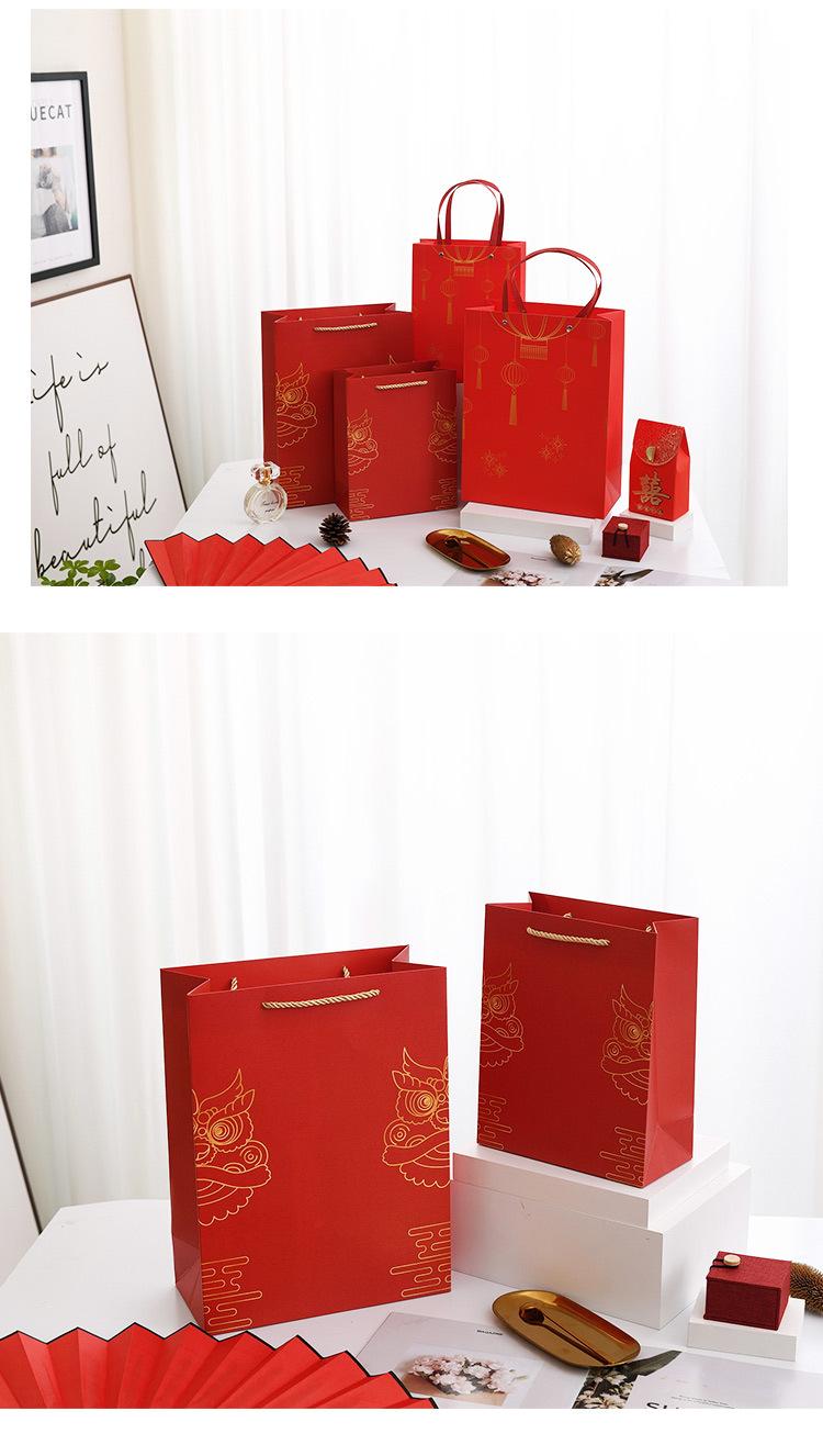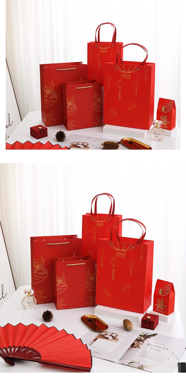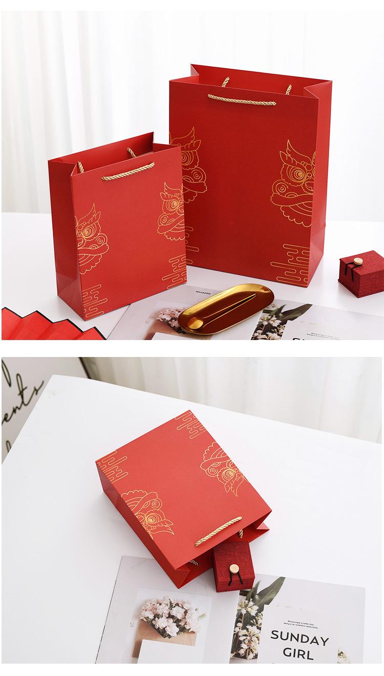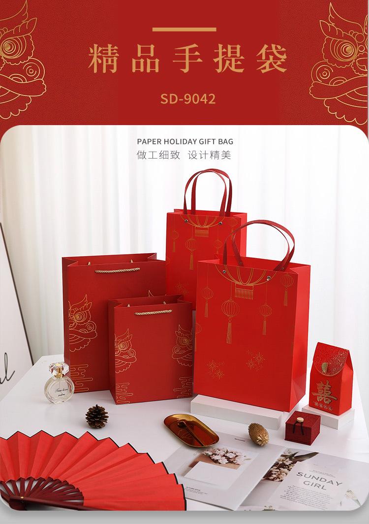 Bolsa de regalo estilo chino Bolsa tote festiva de Año Nuevo Bolsa de embalaje para caja de regalo Bolsa de papel de regalo roja con lunares bolsa de regalo