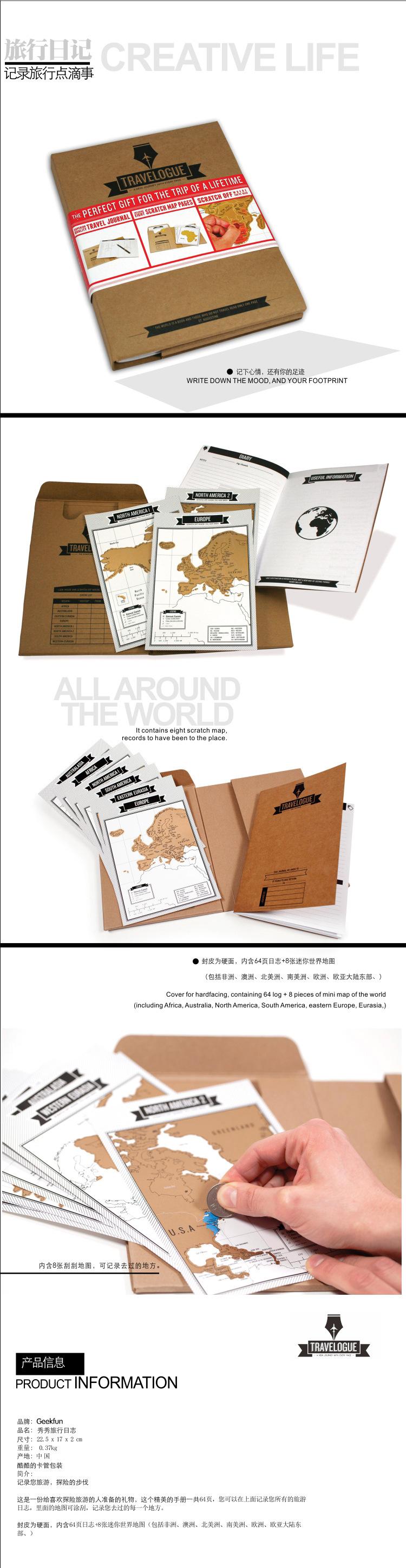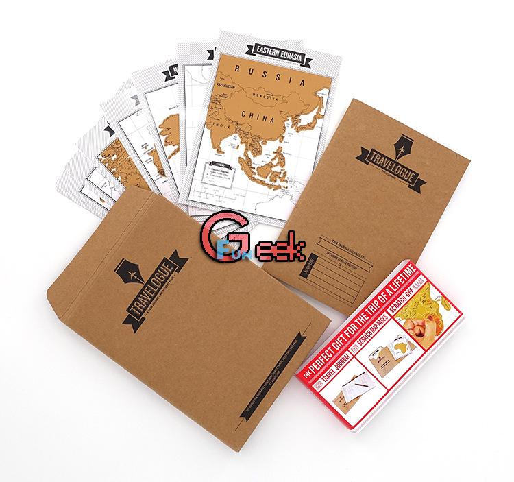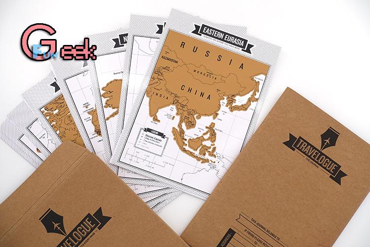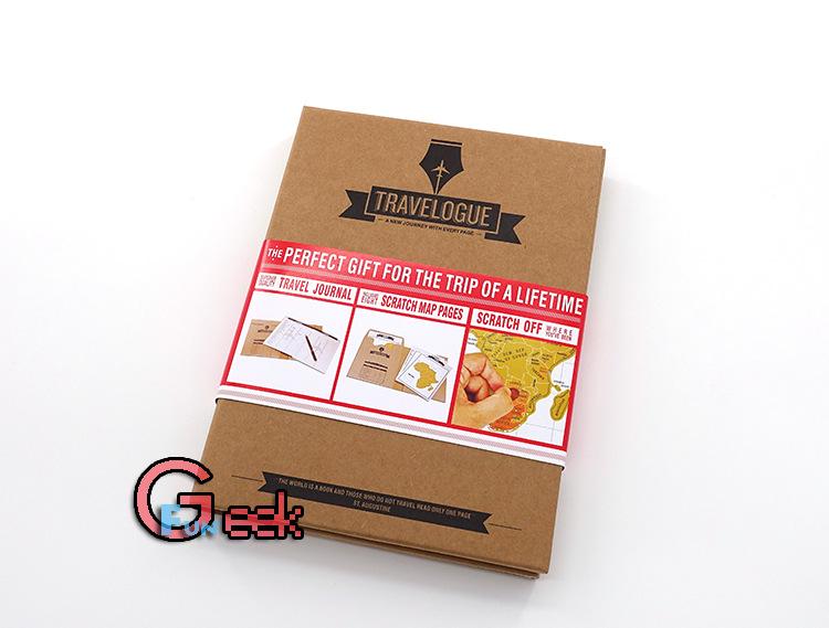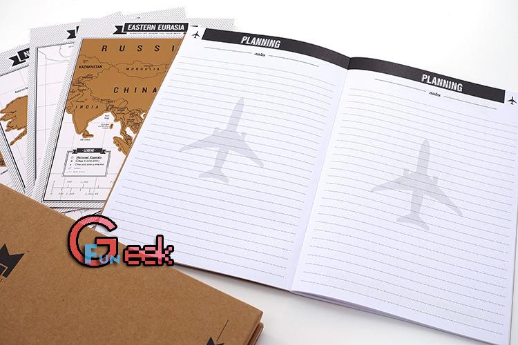 Este es un regalo para personas a las que les gusta el turismo de aventura. Este exquisito manual tiene un total de 64 páginas, en las que puedes registrar todos tus diarios de viaje. El mapa interior se puede rascar para registrar cada lugar que has visitado.